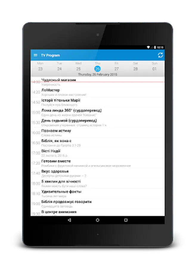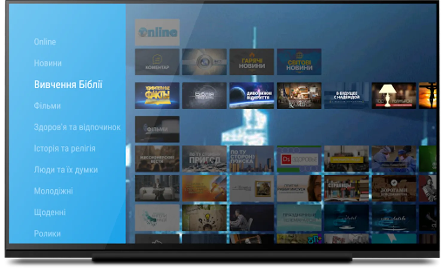 TV offers a large variety of programs - the spiritual and educational for children and youth, family, health, creative programs - through which you can go into learning Bible truths to be a member of interesting life stories to go with children's characters in exciting travel, dive into the world of music, learn about developments in Ukraine and the world in a positive perspective.