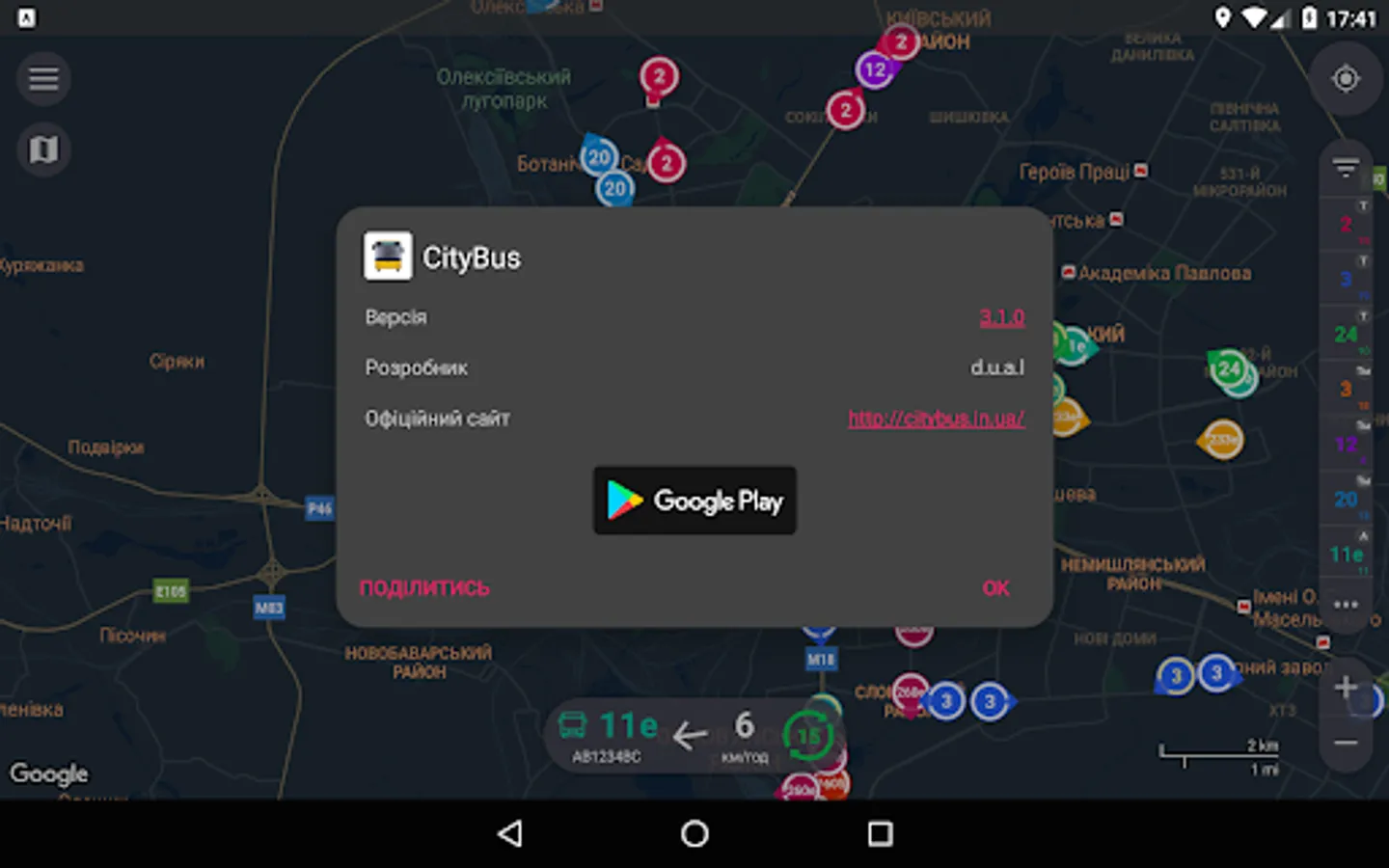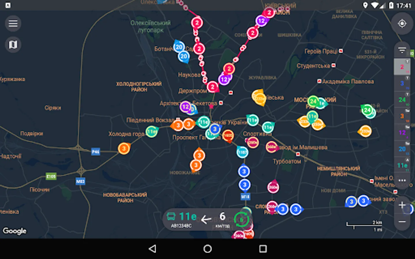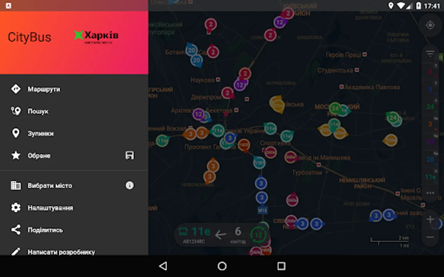 Smart app for tracking public transport of Kharkiv.