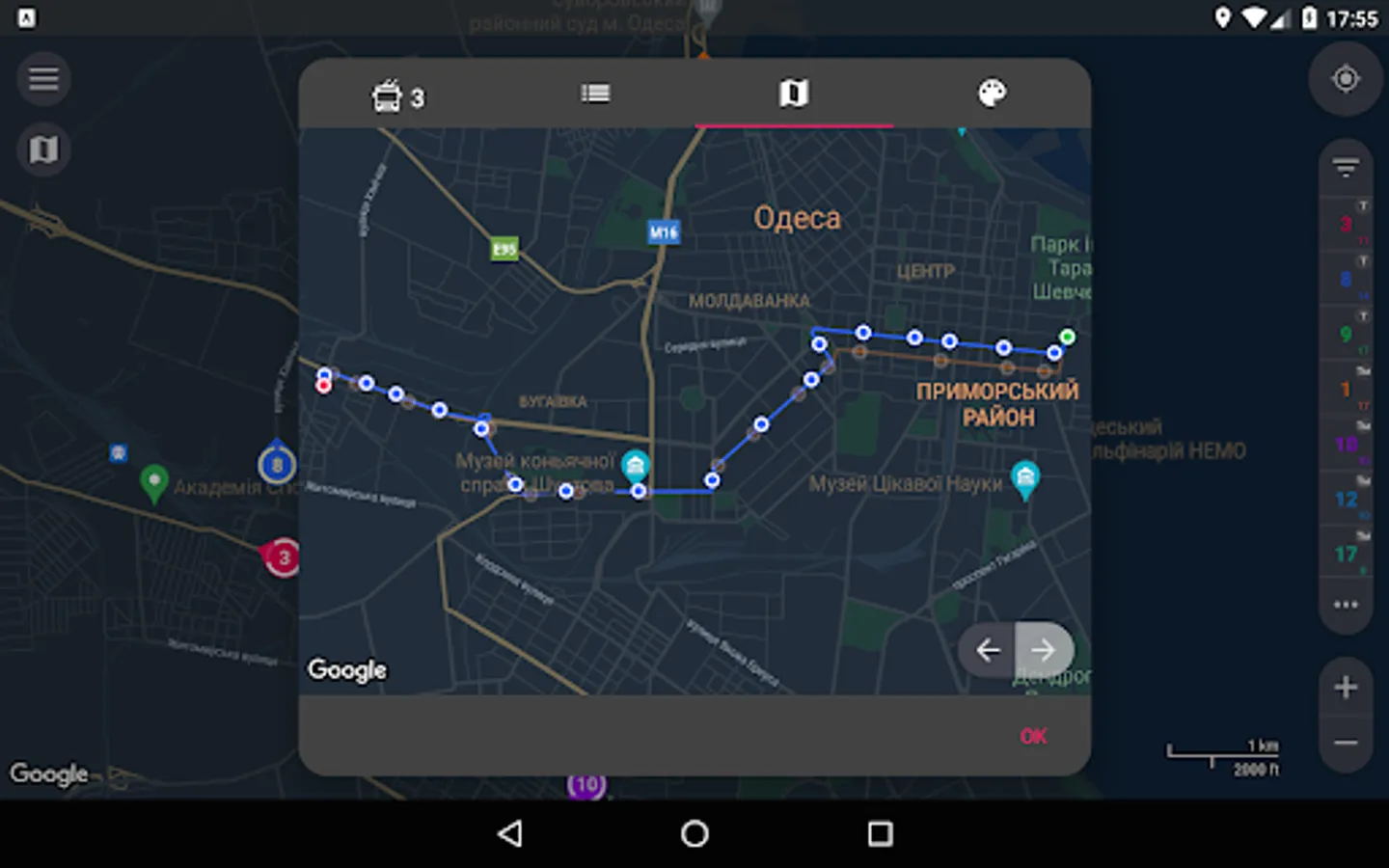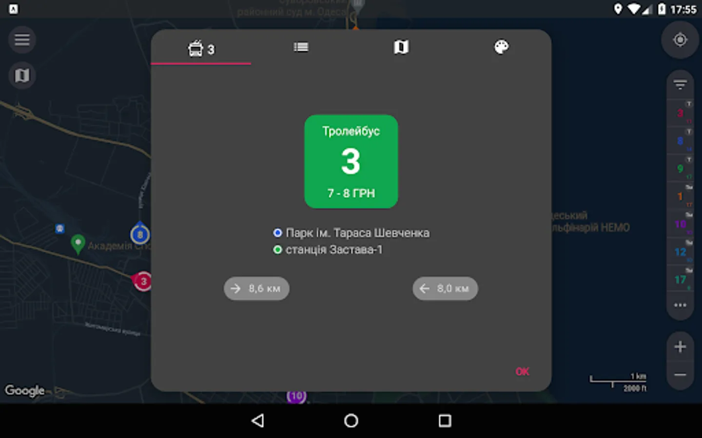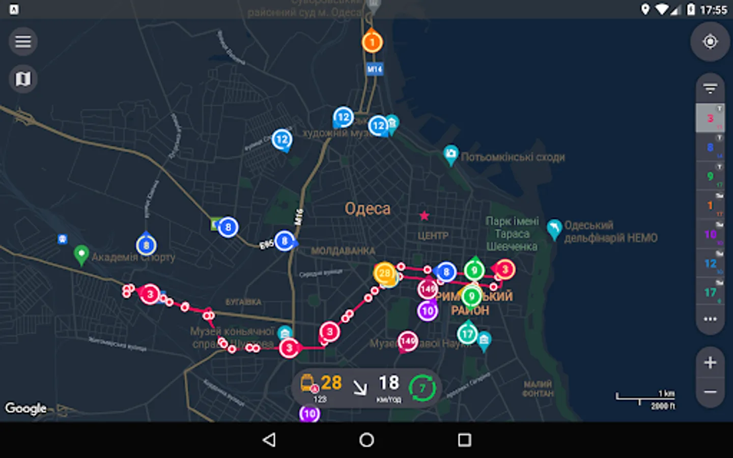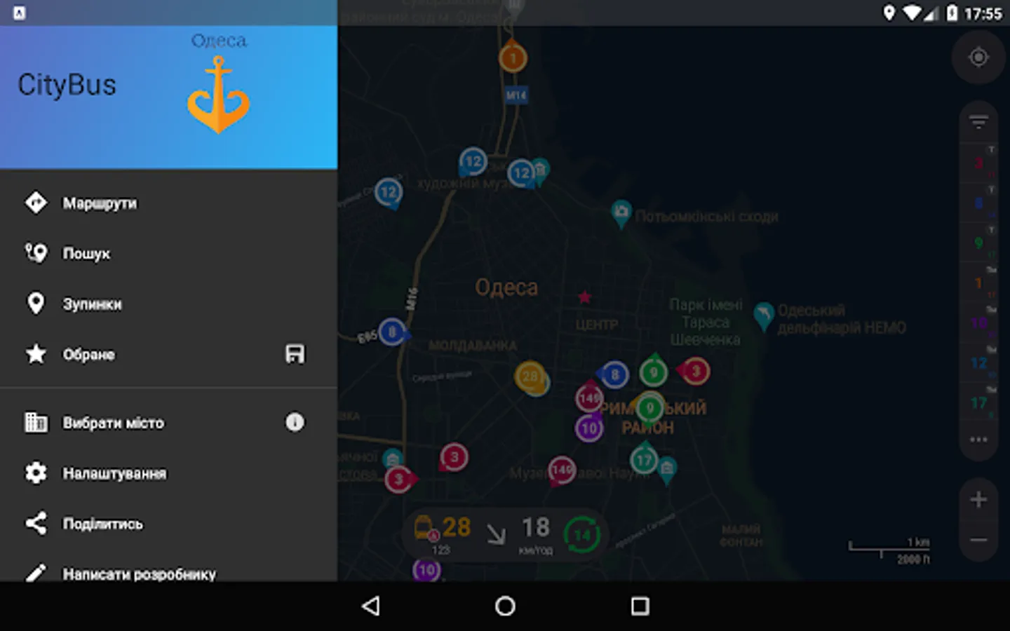 * ATTENTION! App shows in real time only electric transport of Odesa. There is no tracking of buses, as it requires installation of GPS trackers on all buses, which is currently not a mandatory condition for the provision of passenger transportation services in Odesa. Main app function - transport tracking - depends on the functioning of an external source of GPS data. Cooperation of the source and app is not guaranteed. Also, given the significant intervals of data updates sometimes, there may be some differences between the real transport position and the application shown.