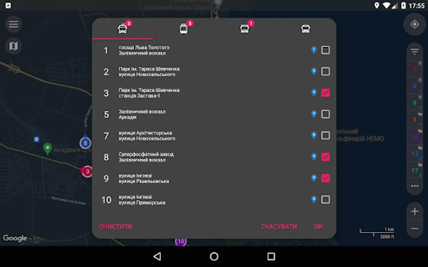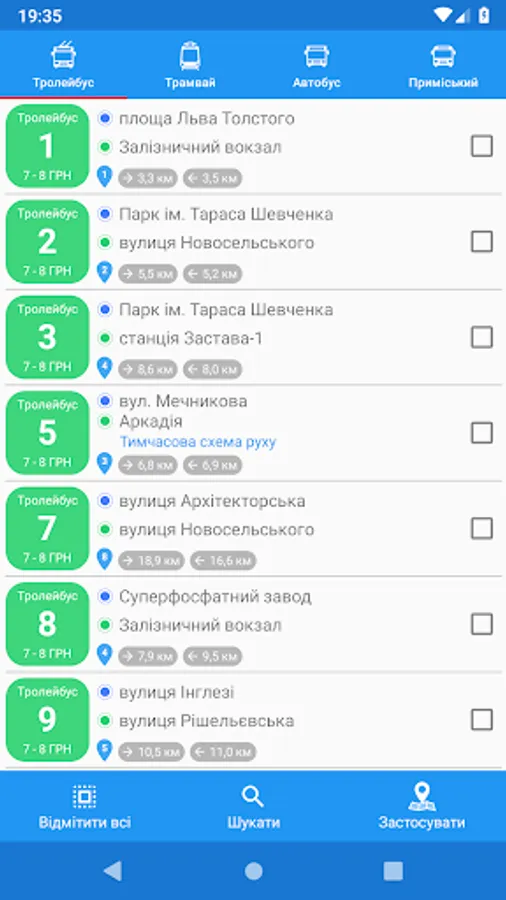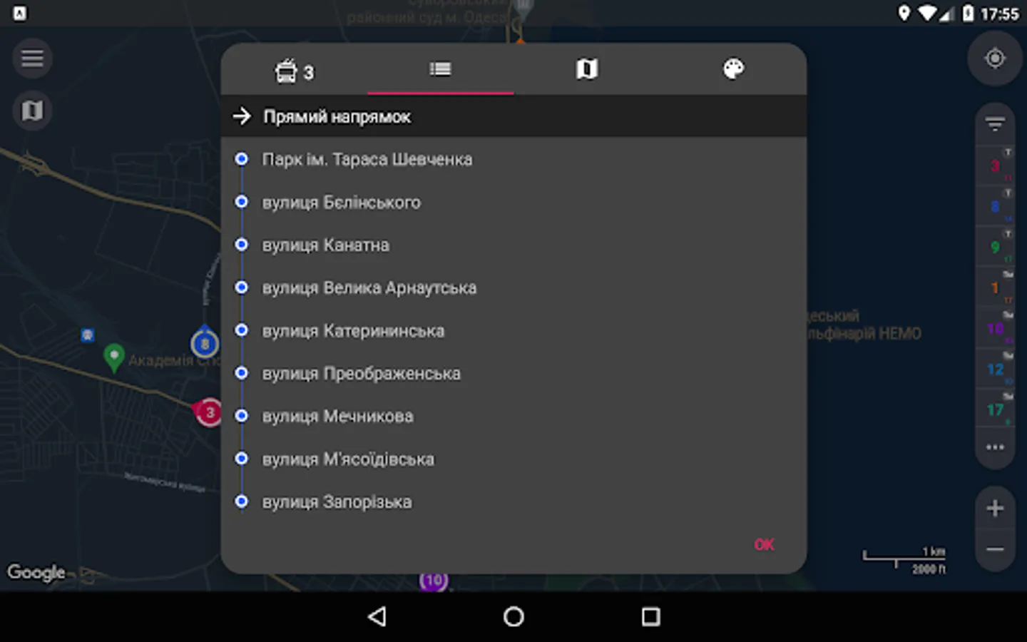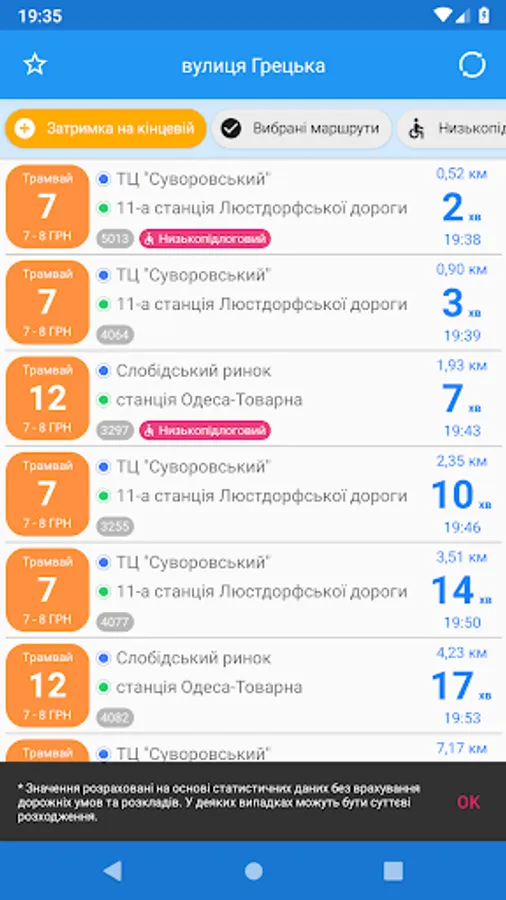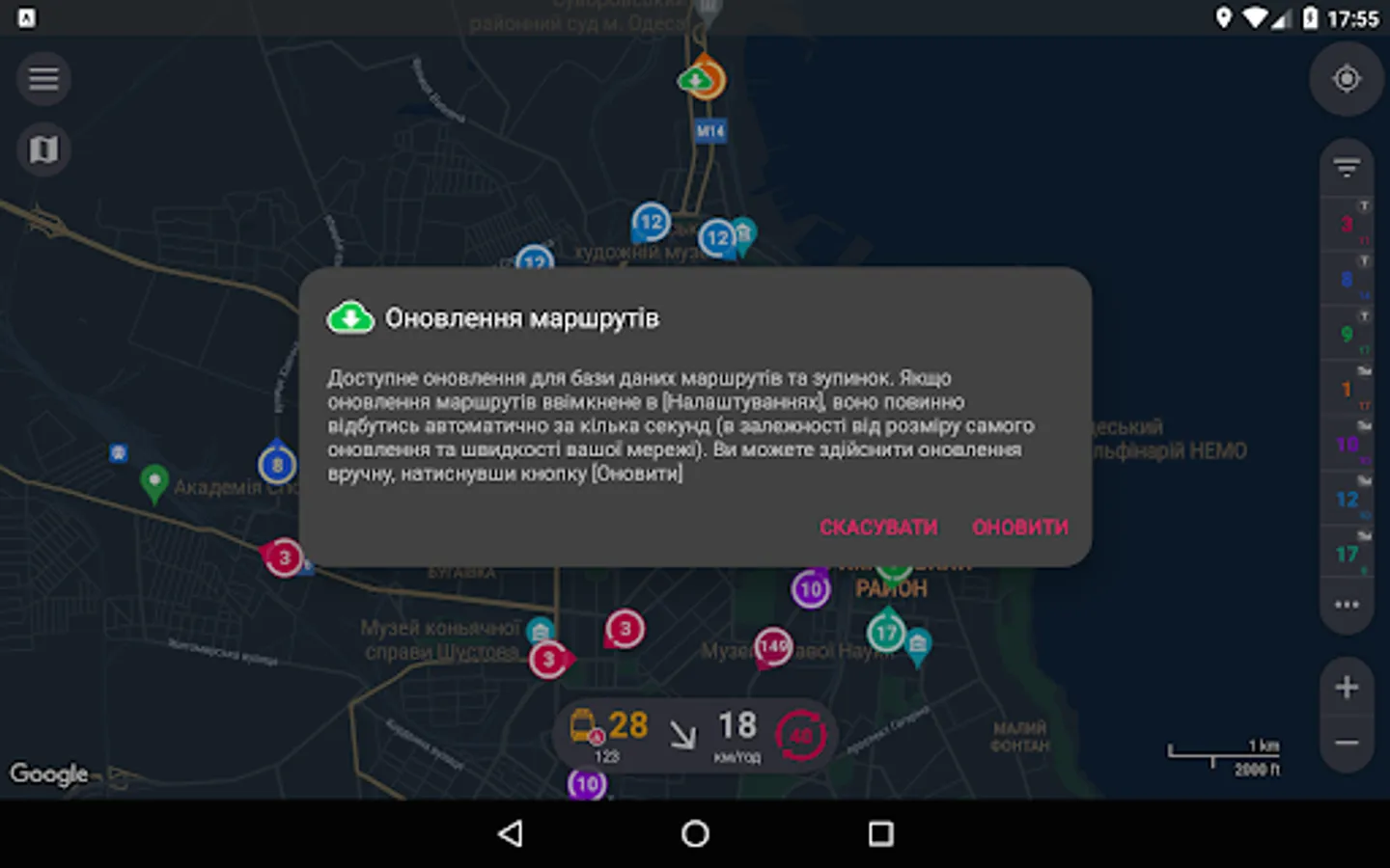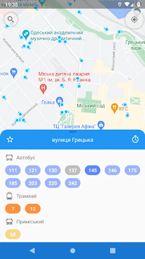 * ATTENTION! App shows in real time only electric transport of Odesa. There is no tracking of buses, as it requires installation of GPS trackers on all buses, which is currently not a mandatory condition for the provision of passenger transportation services in Odesa. Main app function - transport tracking - depends on the functioning of an external source of GPS data. Cooperation of the source and app is not guaranteed. Also, given the significant intervals of data updates sometimes, there may be some differences between the real transport position and the application shown.