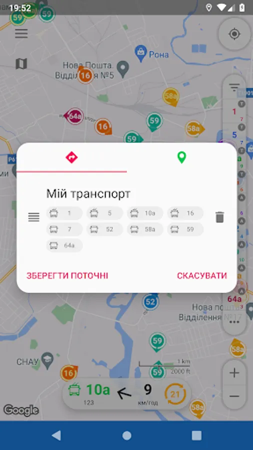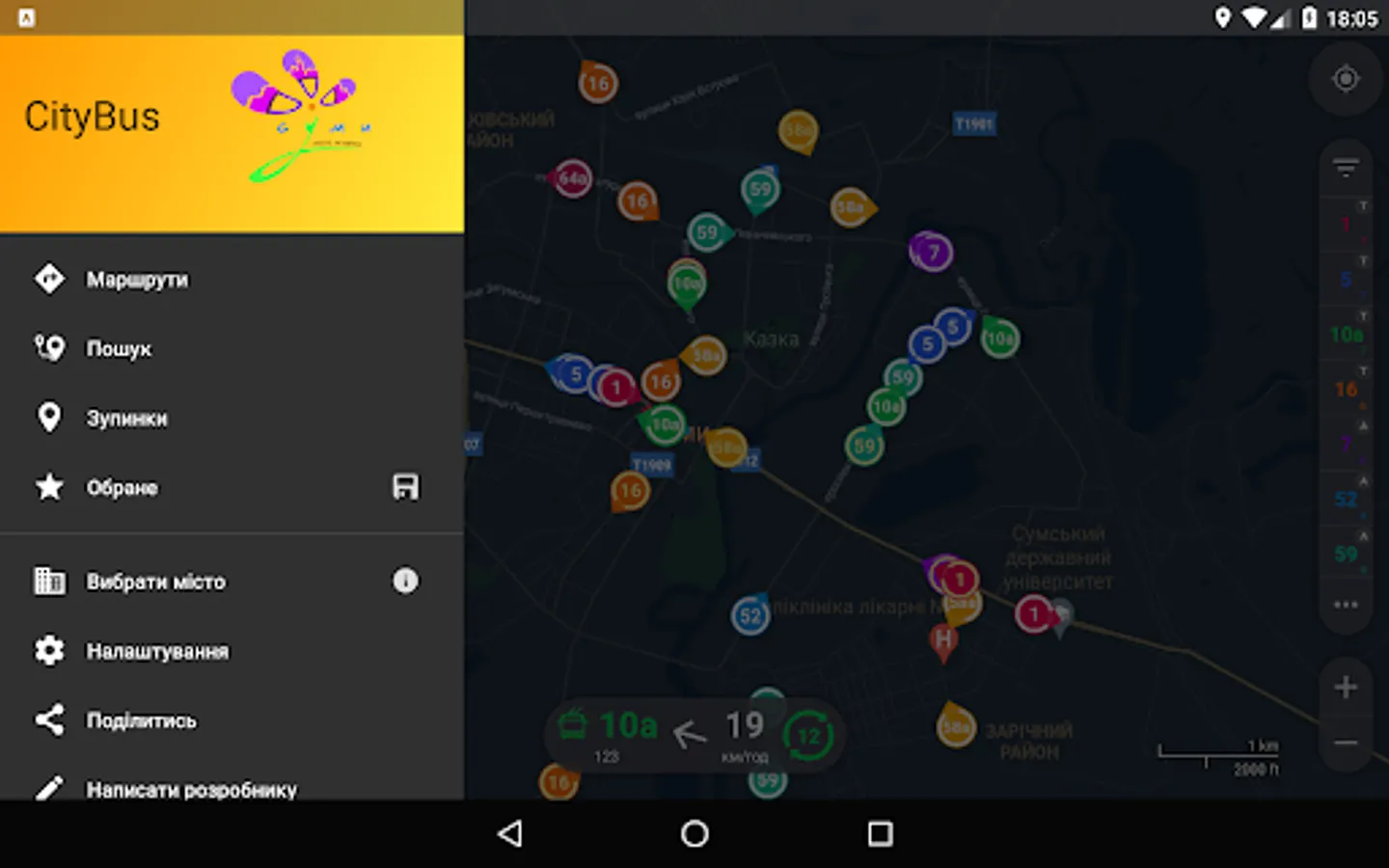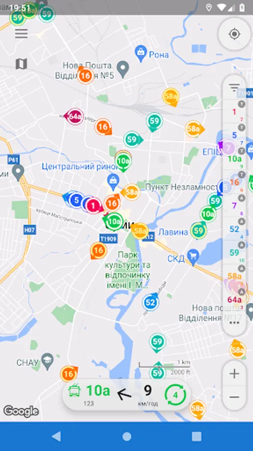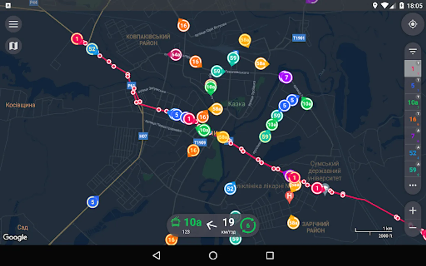 - Speed and heading visualization. Only one glance at map allows you to determine heading and speed of vehicles you need. Depending on speed changes size of colored area of ring around marker, and its center points in a direction the bus is heading.