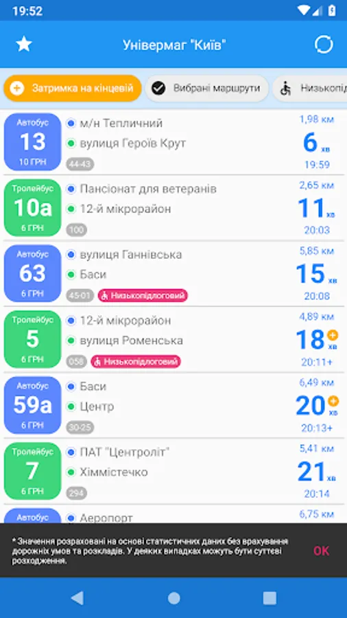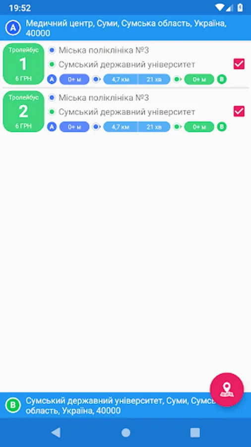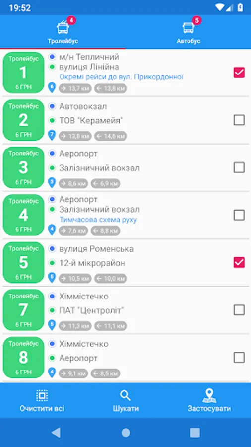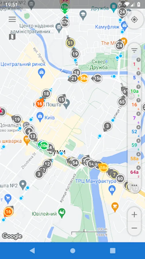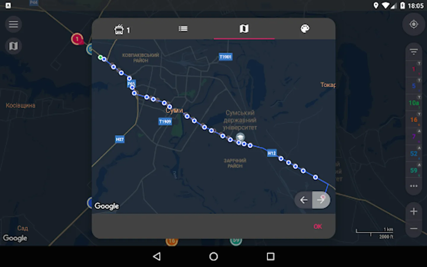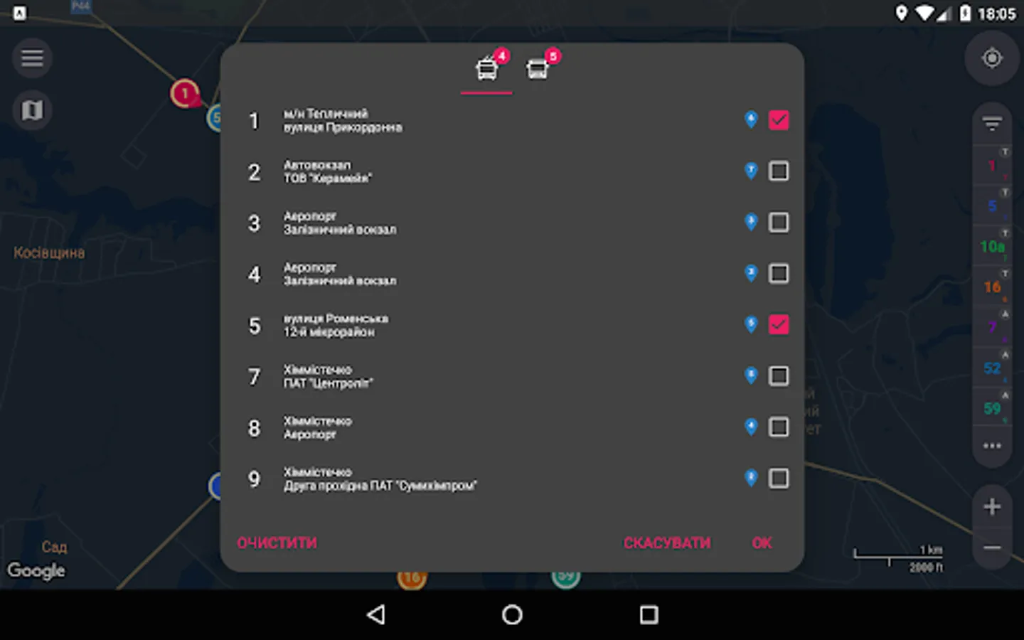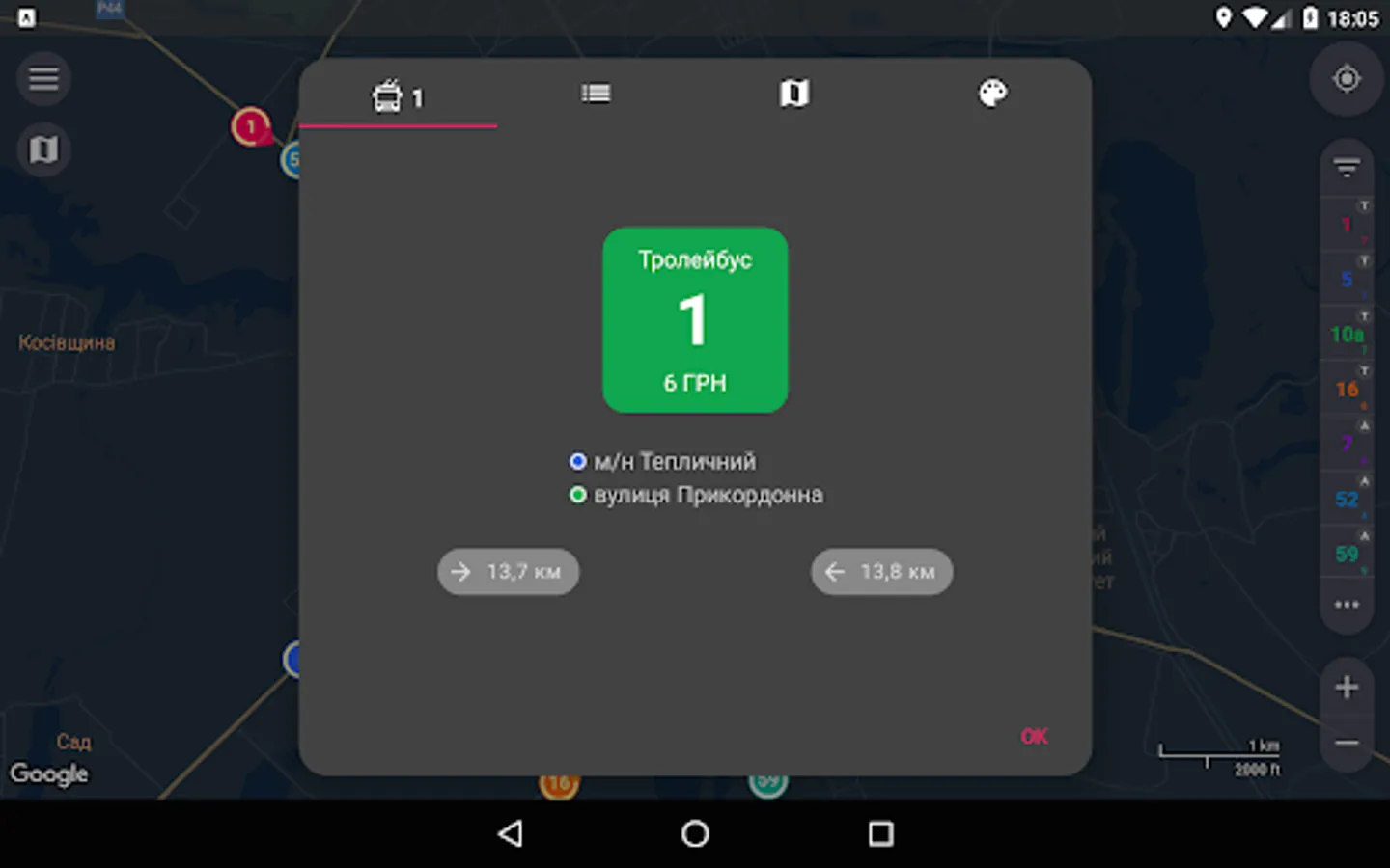- Color routes identification. Distinguishing routes is quite easy, 'cause every selected route is determined not only by its number, but although by color of its marker.