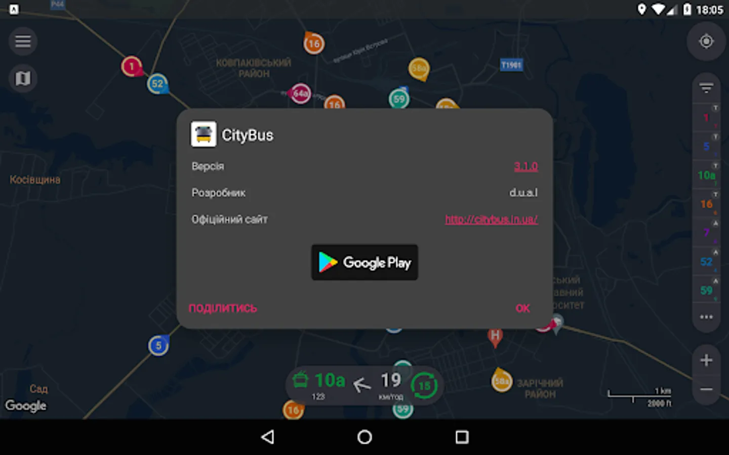* Main app function - transport tracking - depends on the functioning of an external source of GPS data. Cooperation of the source and app is not guaranteed. Also, given the significant intervals of data updates sometimes, there may be some differences between the real transport position and the one that shown in the application.