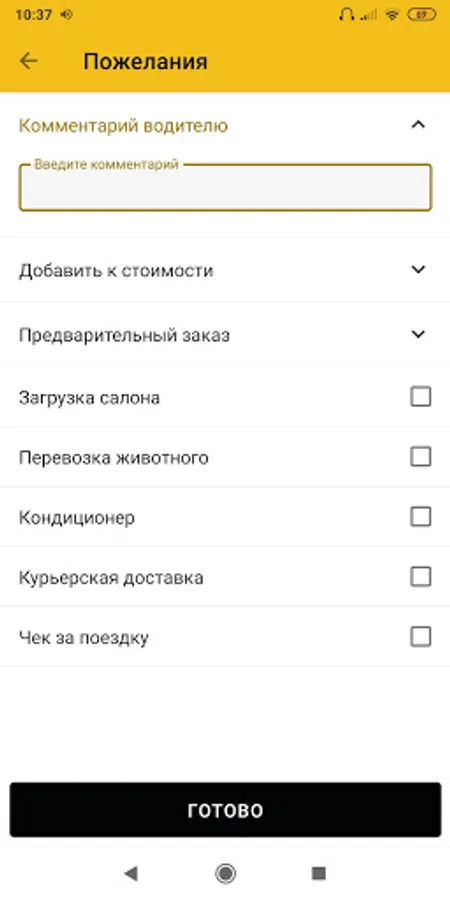 -Order a car with additional conditions (air conditioning, courier delivery, check, and many others);