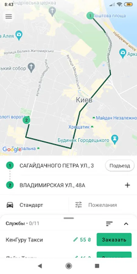 Specify the route of the trip and the application will calculate the cost in several services of the city of Kiev at once.