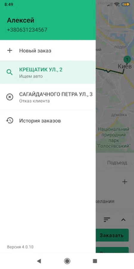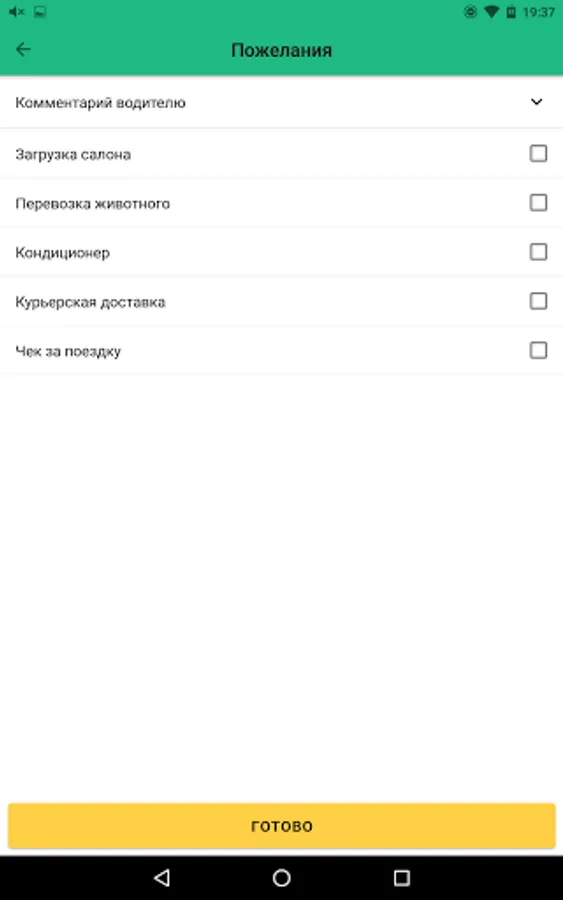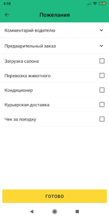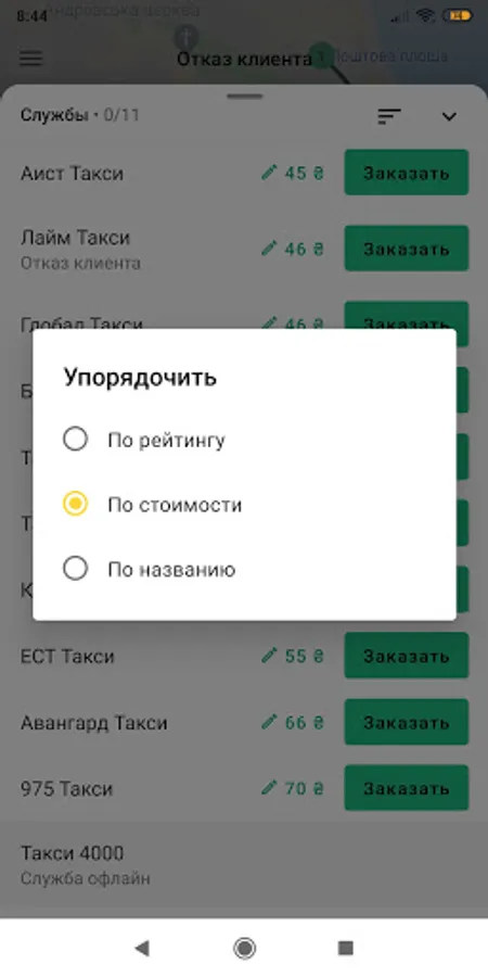 An application with a choice of taxi services, which makes it possible to compare the cost of a trip and call one or more cars at the same time in different services.