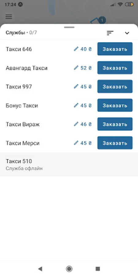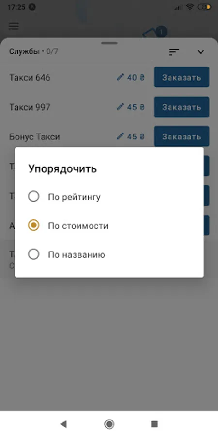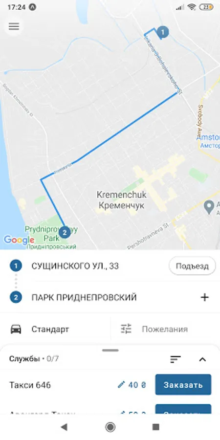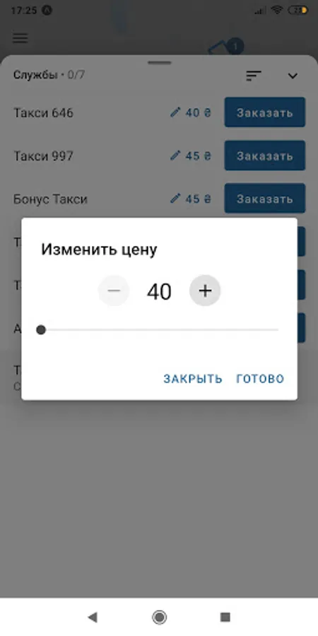 Having indicated the route, you can easily find out the cost of the trip in various taxi services of Kremenchug. Sequentially or in parallel, call the driver to the delivery address, increase the cost if necessary, cancel and view the order status in all taxis at once.