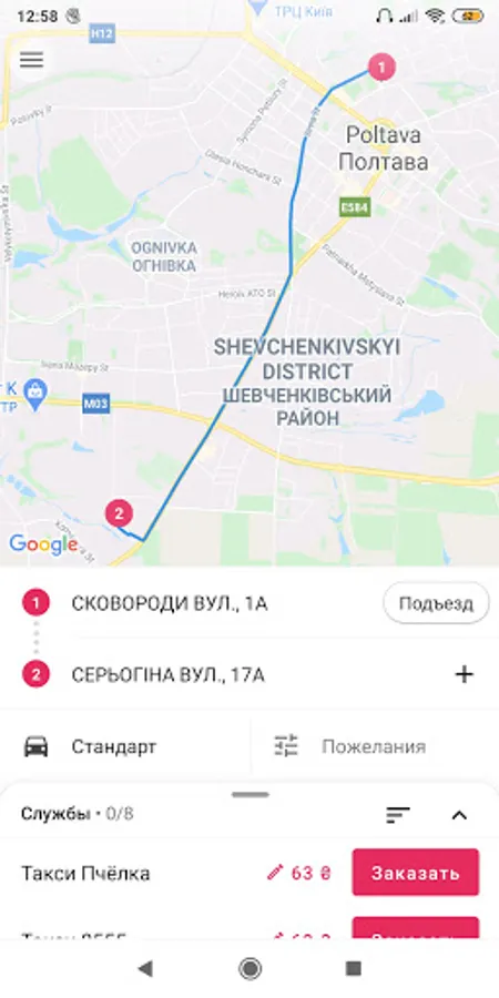 The application allows you to choose the optimal service for trips around the city of Poltava and the nearest settlements.