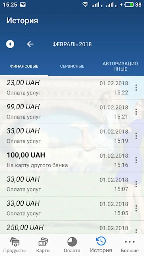 - formation of statements and viewing the history of transactions,