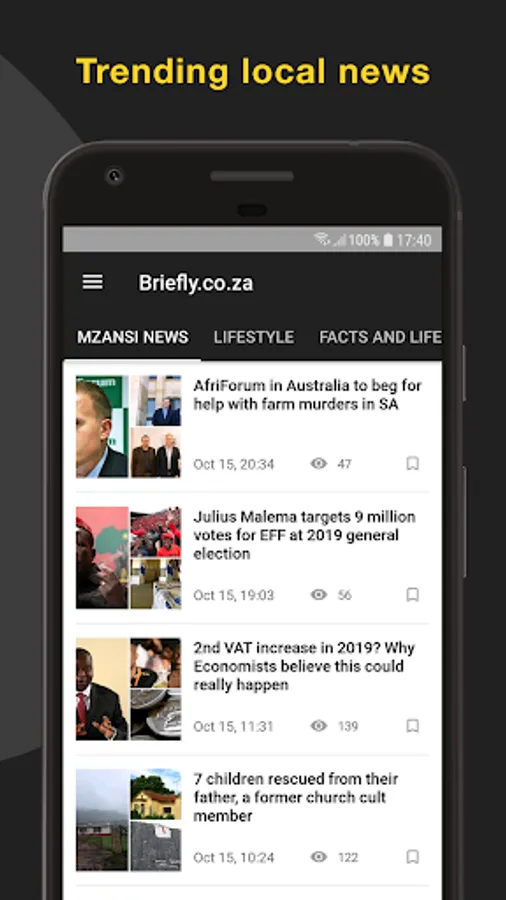 Lifestyle and everyday stories, social issues: stay informed on daily news in your surroundings: read stories about weddings, luxury life, drama stories, land expropriations, rich kids, personal life stories, relations, rumors, pastors’ stories, extraordinary inventions and share emotions on local TV shows, series. Don’t miss news headlines on local heroes and ProudlySA (#proudlysouthafrican) stories on our news app and news site. Also, pay special attention to Opinion articles.