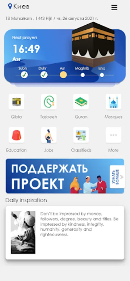 An innovative application that combines many useful functions for Muslims around the world. Developed in Ukraine under the leadership of RAMU.