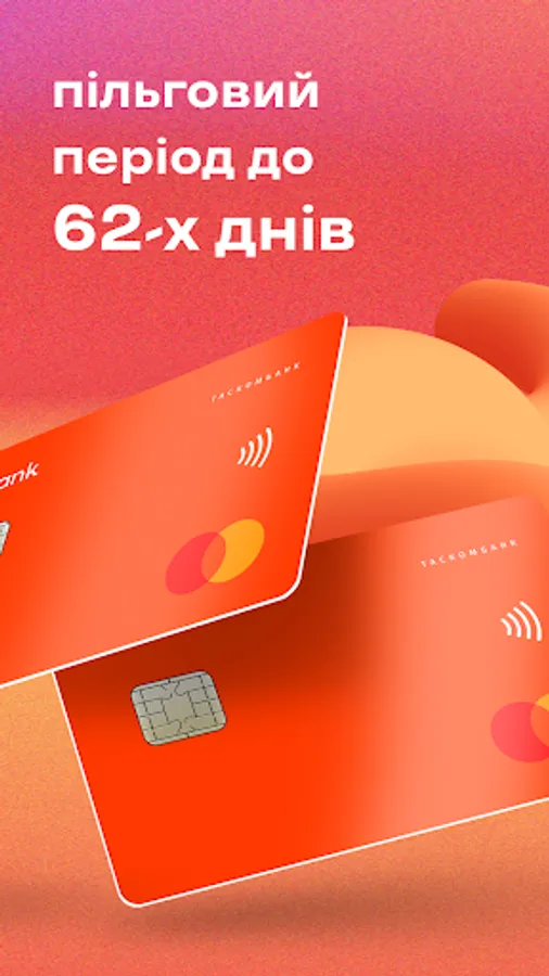 our product is a handy mobile supplement for efficient management of your finances and a MasterCard World class credit card with PayPass and a credit limit of 500 ₴ to 200,000 ₴ (4.9% monthly / 59% regular) during the first half of the year up to 62 days.