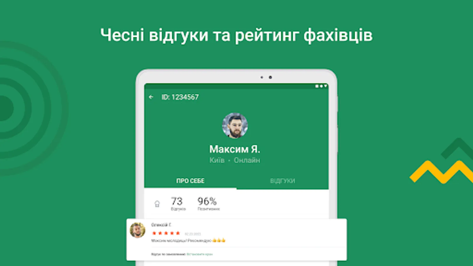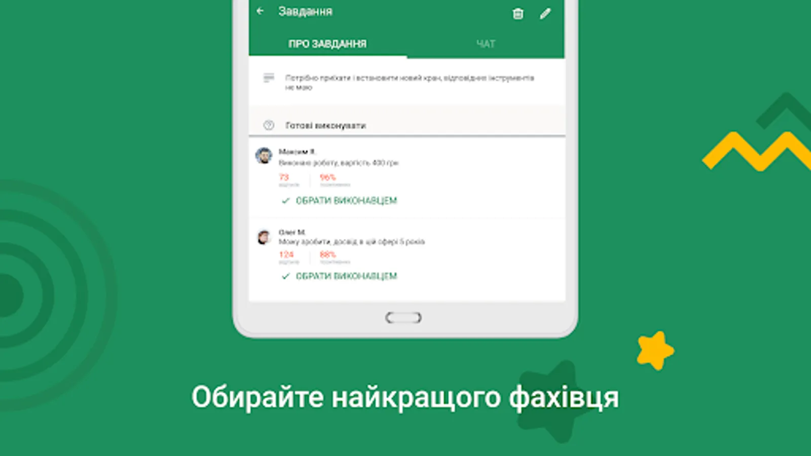 The application allows you to quickly and conveniently order the services of craftsmen from more than 1,000 different categories: