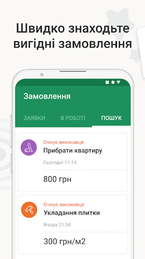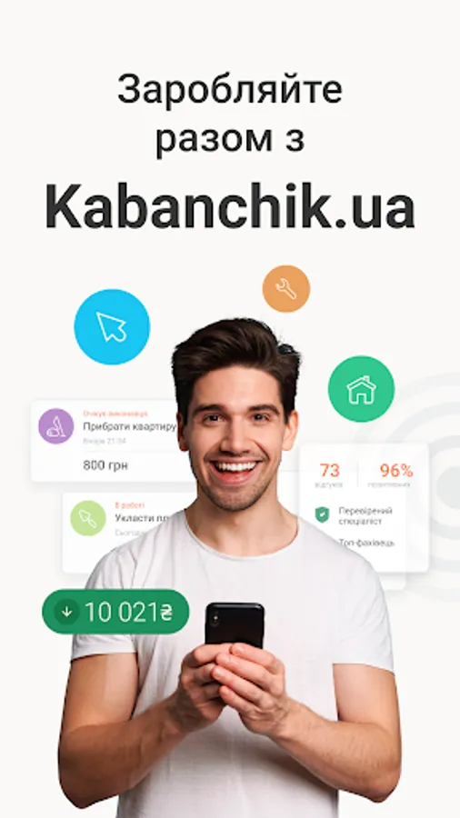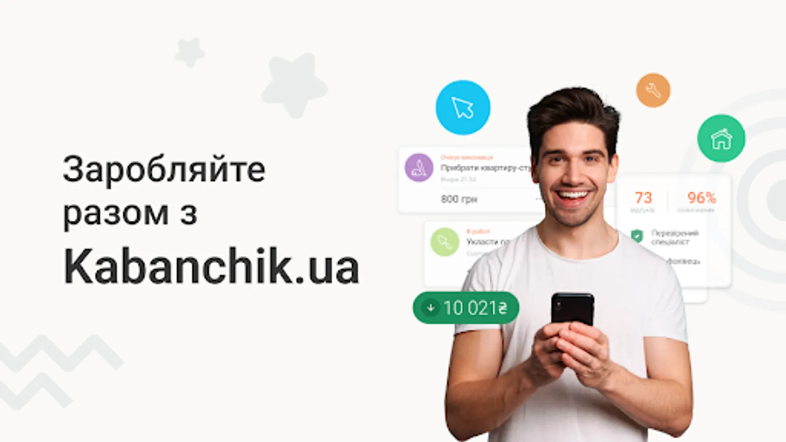 To become a performer on Kabanchik, register in the application or on the website Kabanchik.ua. It's easy and fast!
