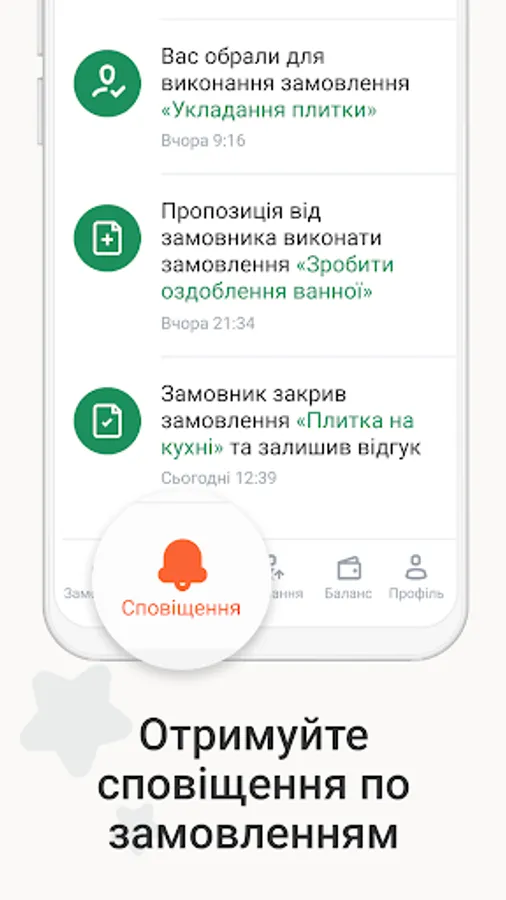 More than 320,000 specialists trust us and are already receiving orders through the Kabanchik app! And 1,000,000 customers are ready to entrust you with tasks and provide work :)