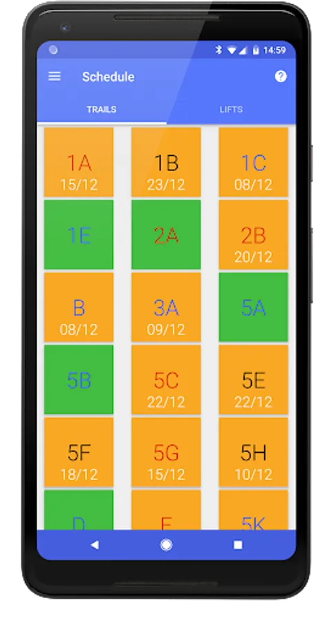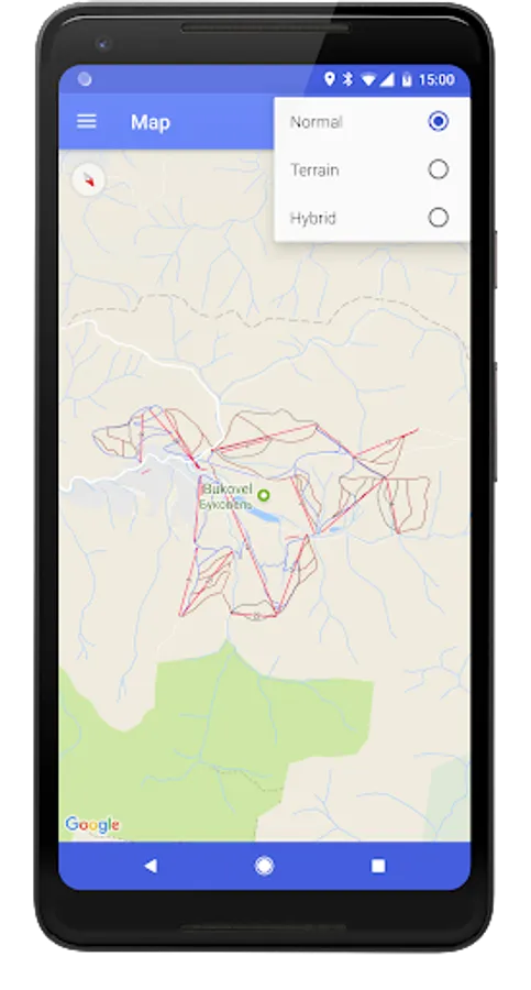 • a Google map of the resort with all of the lifts and trails marked, the app also shows your position on the map;