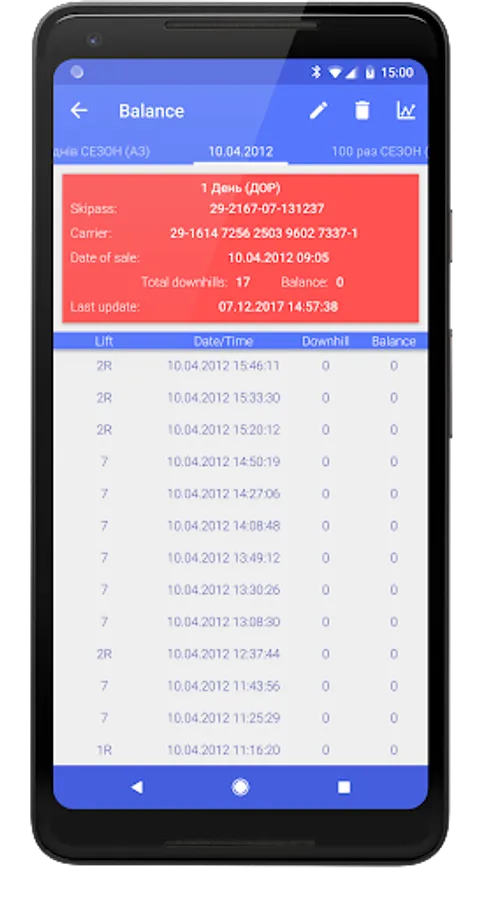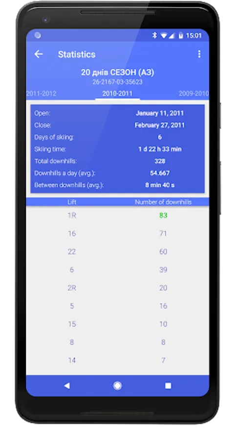 • the additional stats on the skipass and club cards by days, months, seasons, and all time;