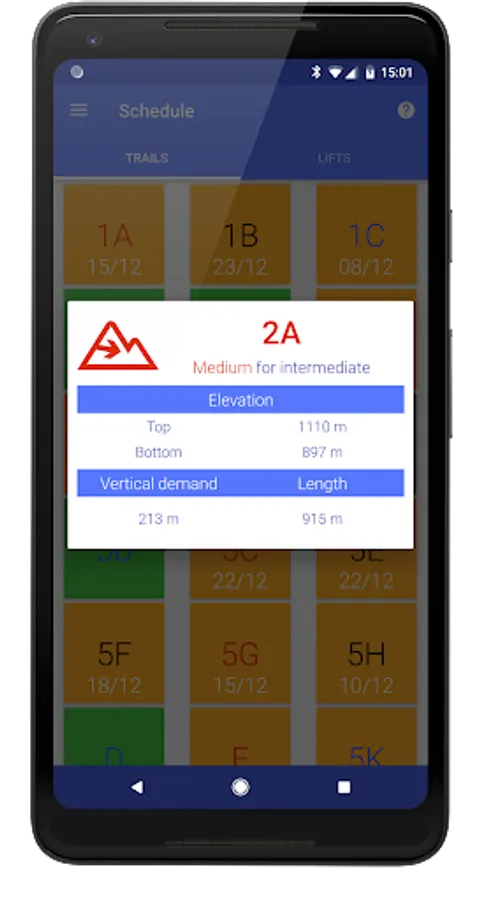 • the detailed specifications of every lift and trail (type, top and bottom altitude, altitude difference, length);