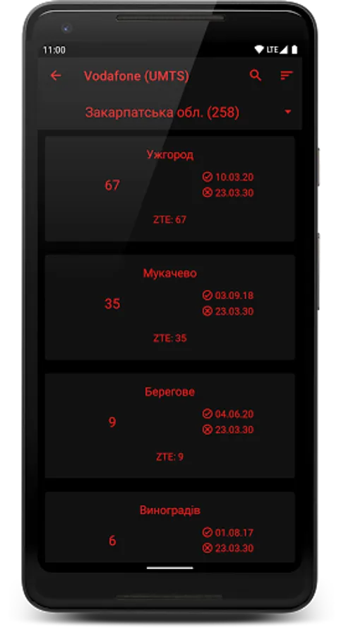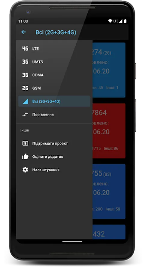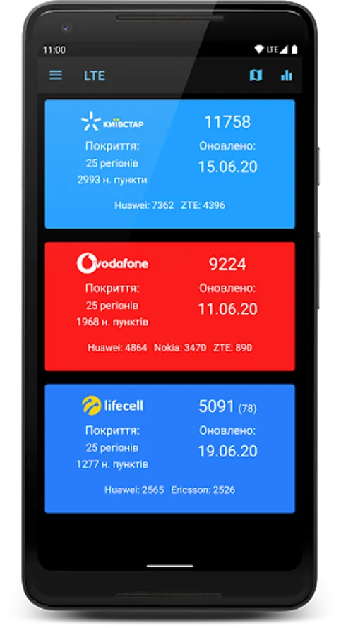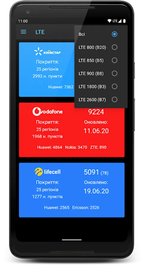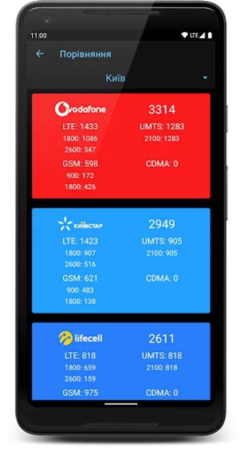 The information is available for operators operating on GSM, UMTS, LTE and CDMA technologies: Kyivstar, Vodafone, Lifecell, TriMob, Intertelecom and PEOPLEnet.