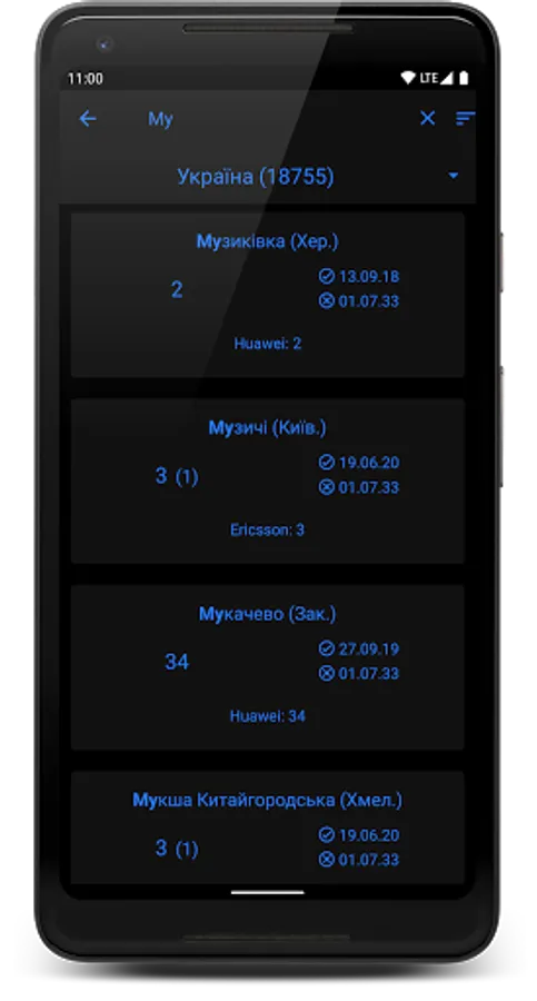 The application downloads and displays information on the number and location of all base stations (registered in the UCRF database) of mobile operators in Ukraine.