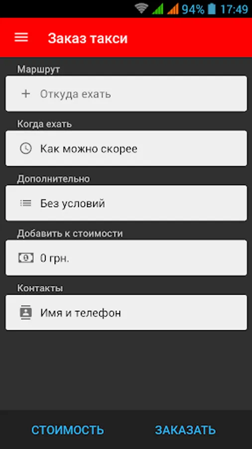 In the application, you can specify additional services, such as station wagon, courier delivery, and others. The order is issued both for the near future and in advance, which will be convenient when traveling to the airport, railway or bus station. In addition to calling a taxi in Kyiv, you can use the "Add to Cost" function, which will make it possible to make successful orders during a sharp deterioration in weather conditions, peak hours, as well as during hours of increased traffic on the roads of Kyiv.