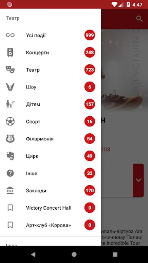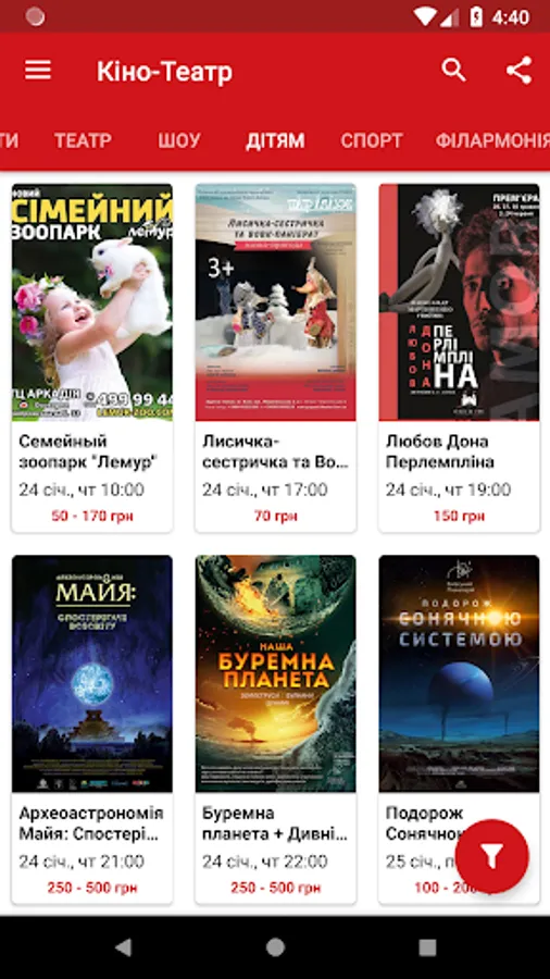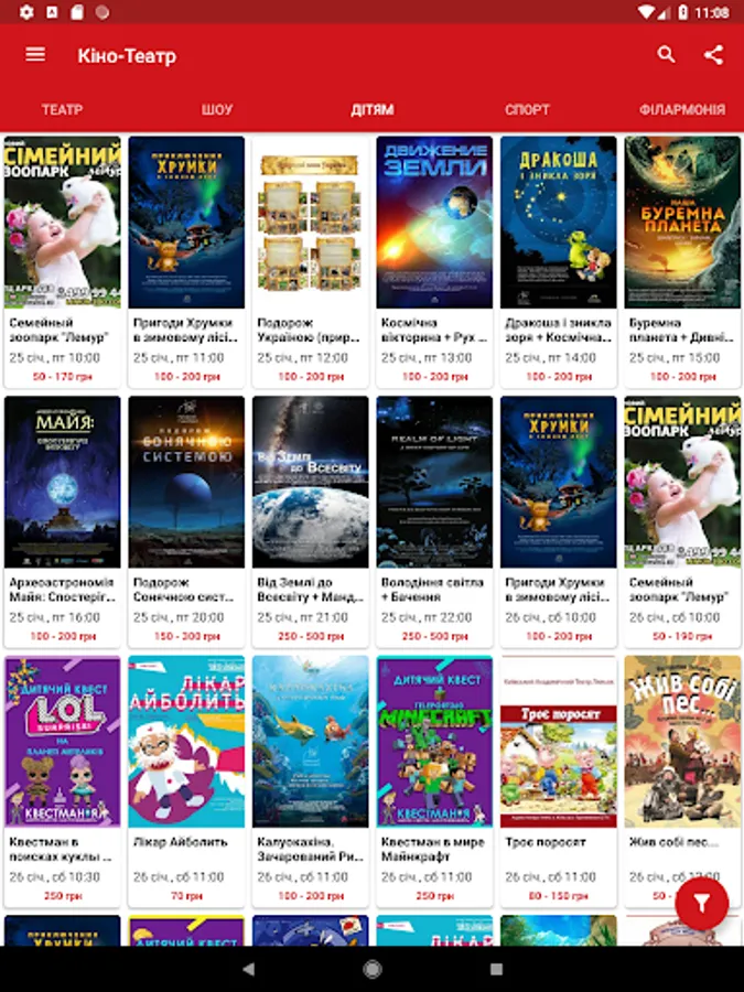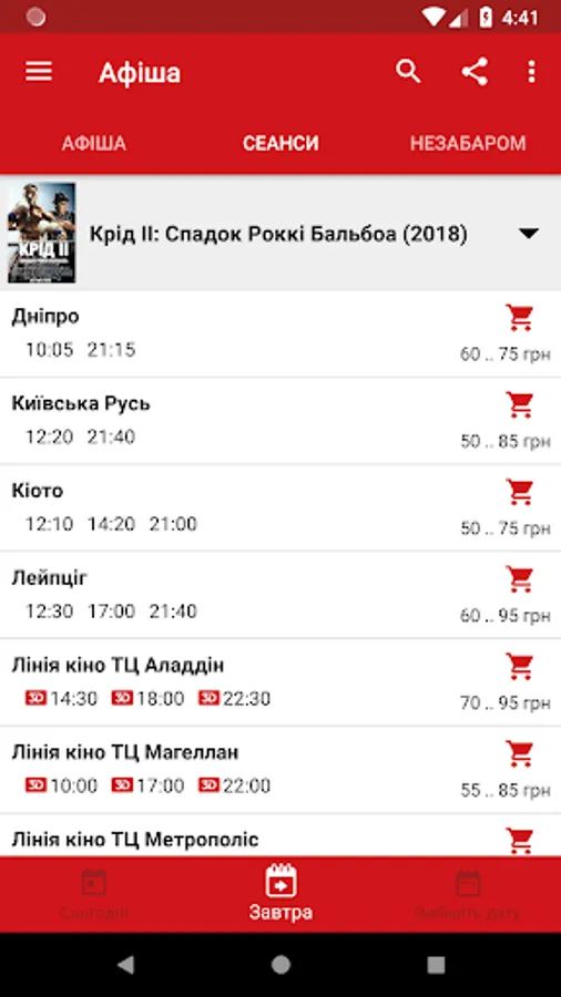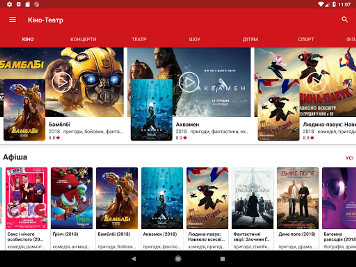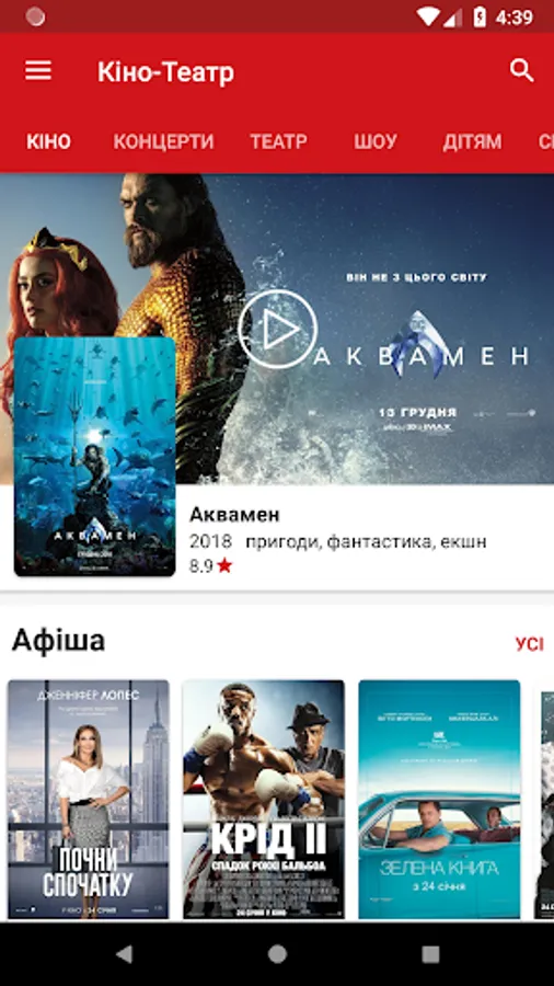 Cinema-Theater is information about cinema, actors, timetable of sessions in cinemas of Ukraine, concert, theatrical, sports and other cultural events in one application!