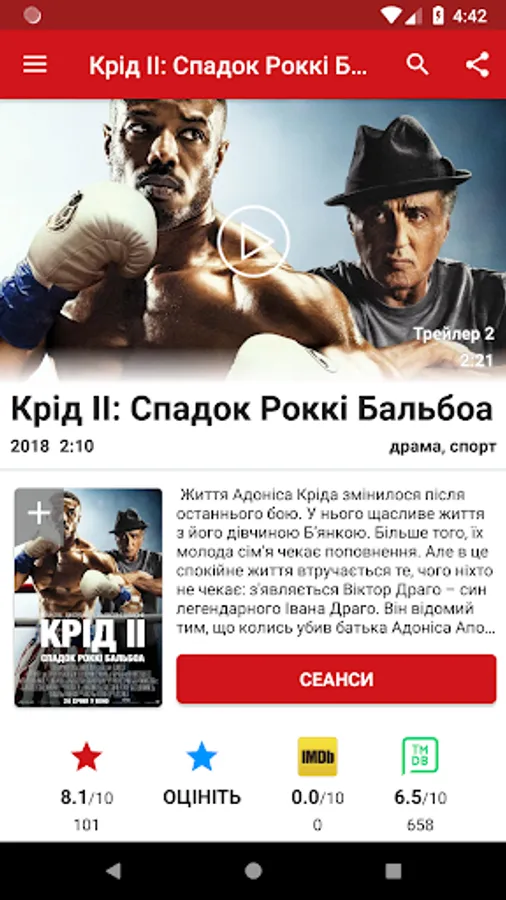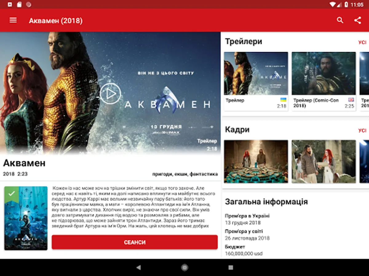 The application operates with the support of the largest cinema portal of Ukraine kino-teatr.ua, as well as thanks to you and your feedback, on the basis of which a new and improved existing functionality is created.
