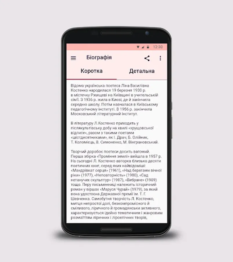 The application created for supporters of creativity Ukrainian poet who want to read or recall famous works or even get to know them first.