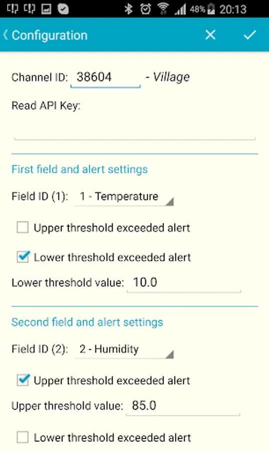Set higher and lower alert thresholds to recieve alerts if monitored field's value exceeds these thresholds.