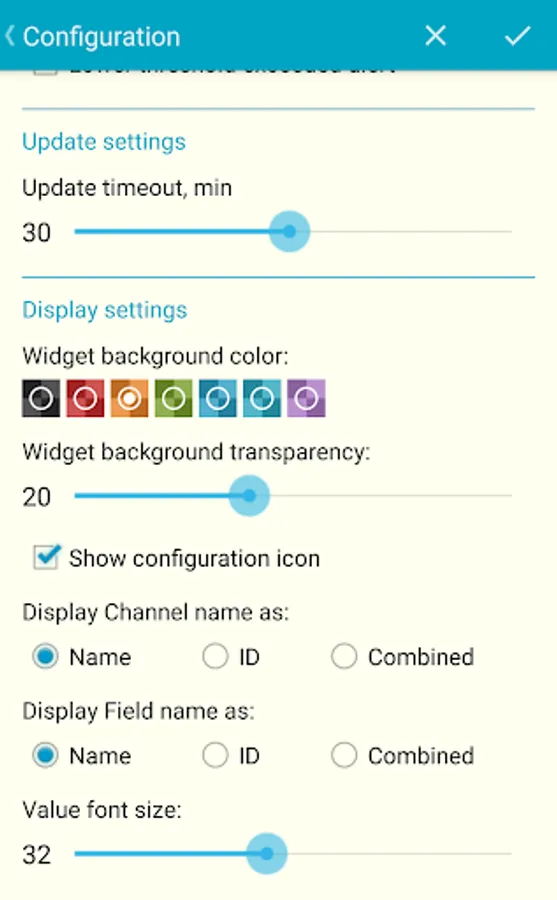 Create widgets to monitor actual Fields’ values in your Channel – one or two in every widget.