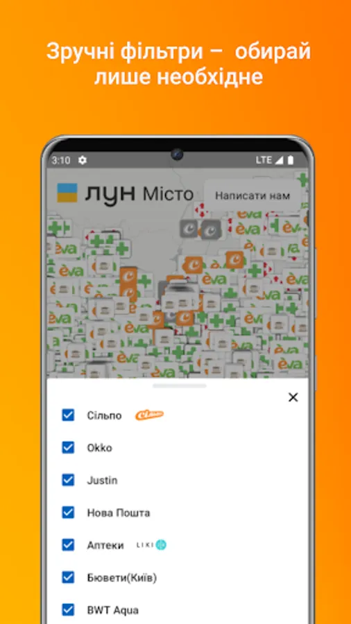 LUN City gathered on one map not only the addresses of working points, but also important information on them.