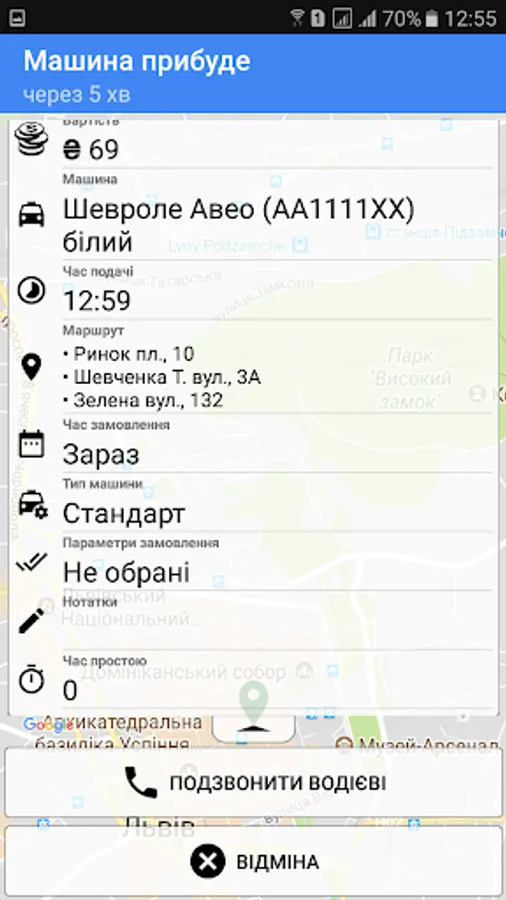 - The mobile application displays detailed information about the taxi vehicle that will come to you.