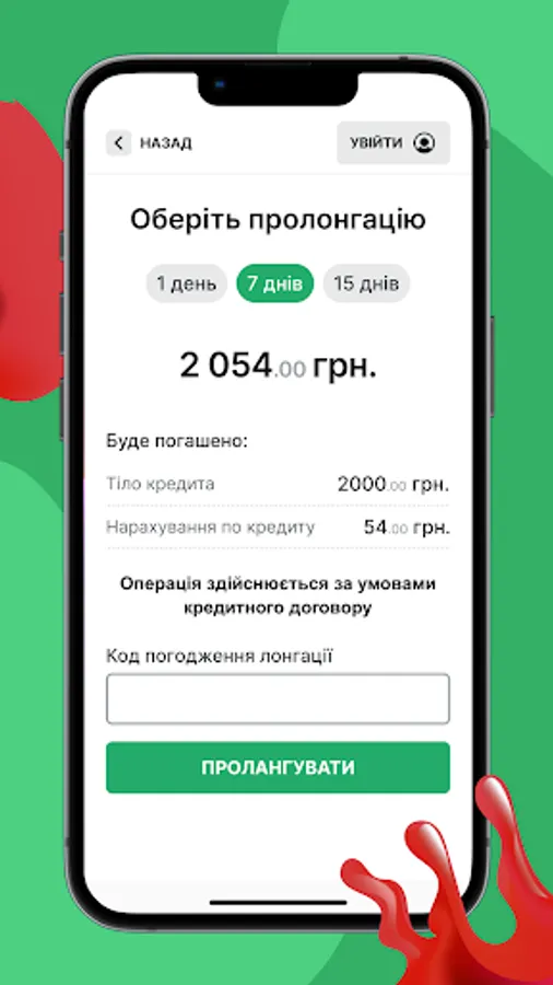 Loan up to UAH 15,000 for a period of 90 to 360 days for all clients.