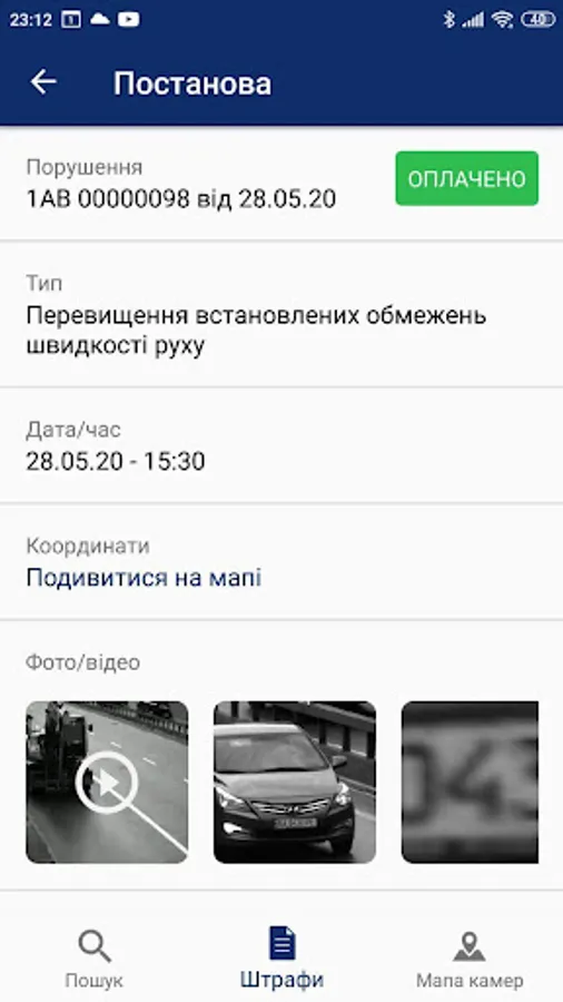 Shtrafy PDR application is the official application of the Ministry of Internal Affairs of Ukraine and allows not only to pay existing fines but also to quickly receive notifications about new resolutions or changes of their status. Also in the application, you can find a map of cameras for automatic recording of traffic violations.