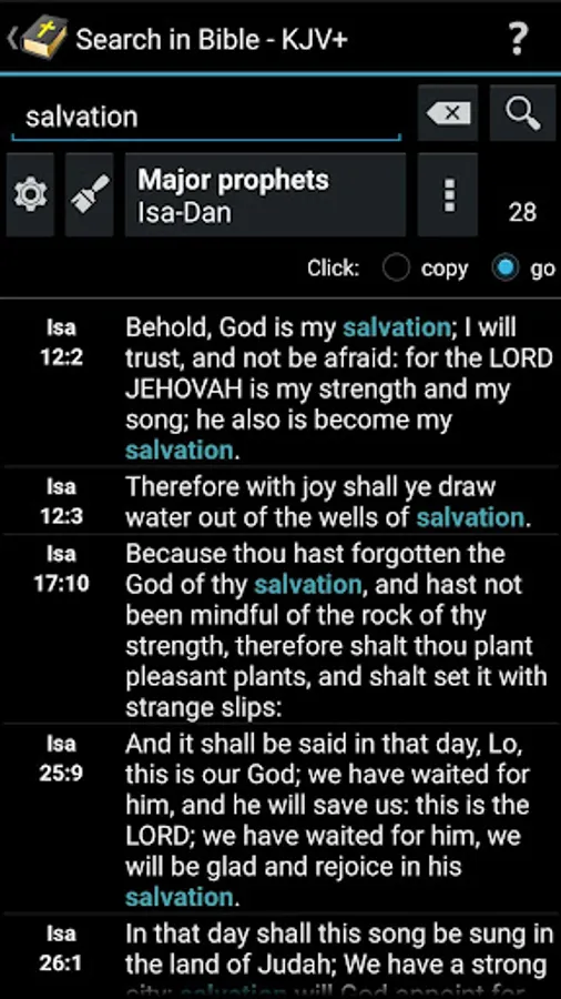 - Showing of dictionary articles on a double-touch of a word in the Bible text, option to search for a word of interest in dictionaries, Strong's lexicon that is activated by a double-touch on a word or on a Strong's number, Strong's number usage searching - capable of replacing a printed "Symphony", option to look up references to a selected verse from dictionary articles - gives input for a deep understanding of integrity of the Scripture.