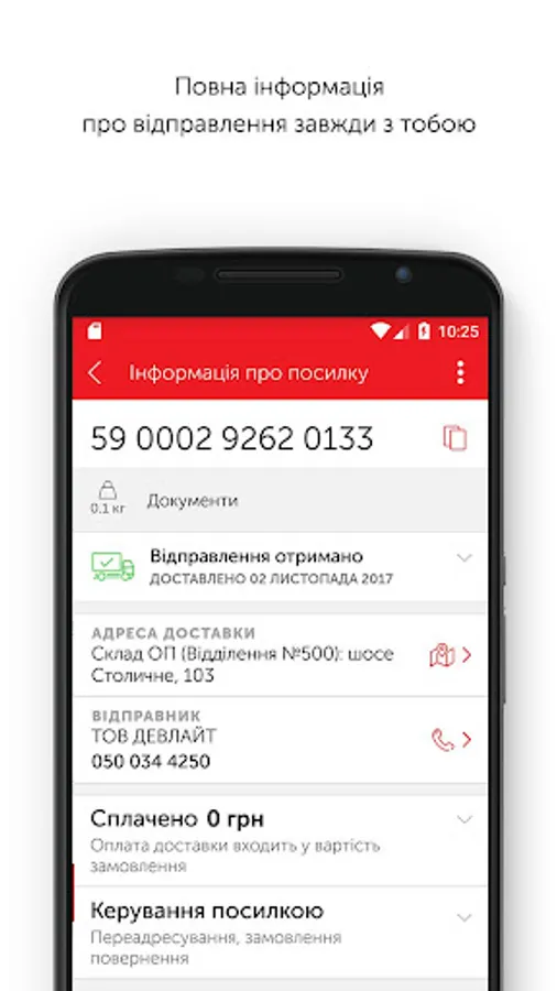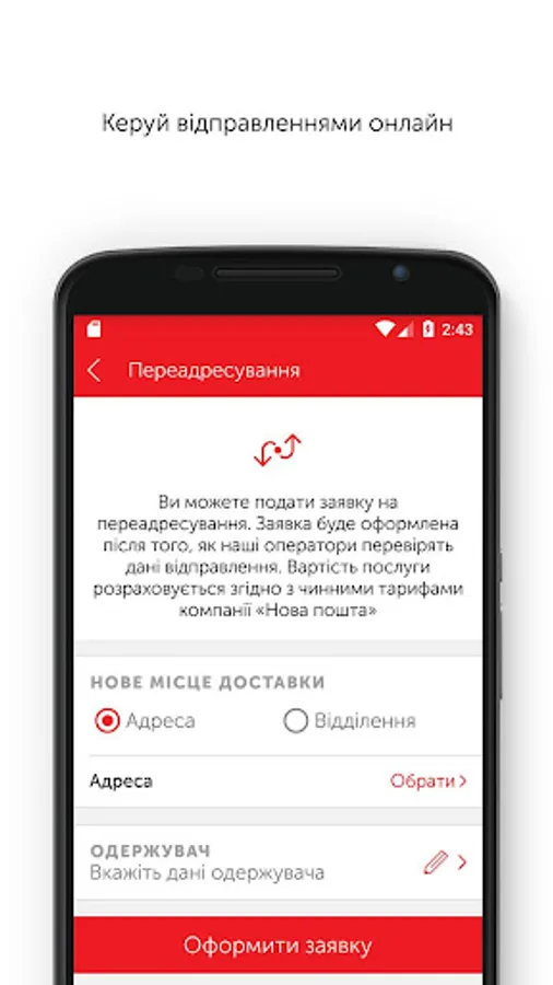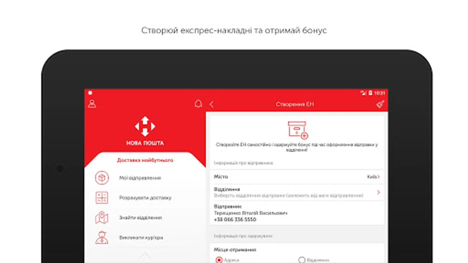 Manage, track the way, make out and pay parcels of "Nova poshta" through the mobile application. Save time in departments.