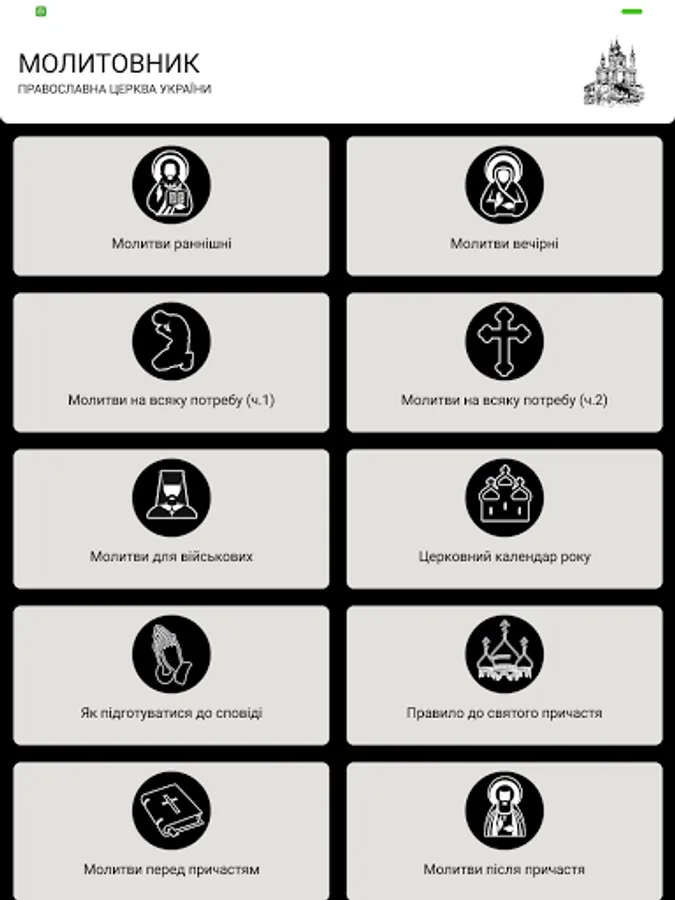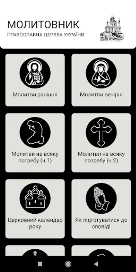 The application was created by God's grace and with the blessing of Archpriest Mykola Khrapach, abbot of the Holy Intercession Church in Poltava. Of the Orthodox Church of Ukraine. Parish website https://pokrova.pl.ua.