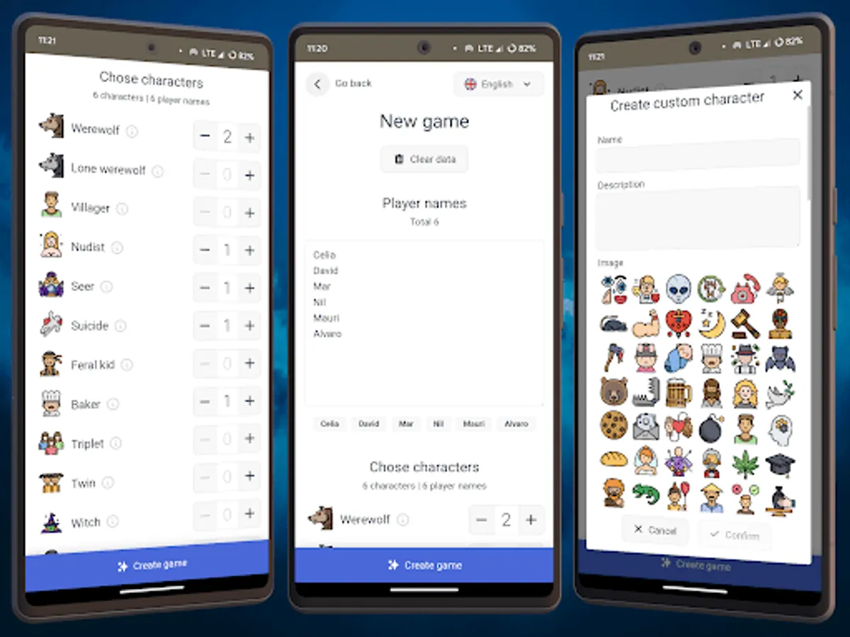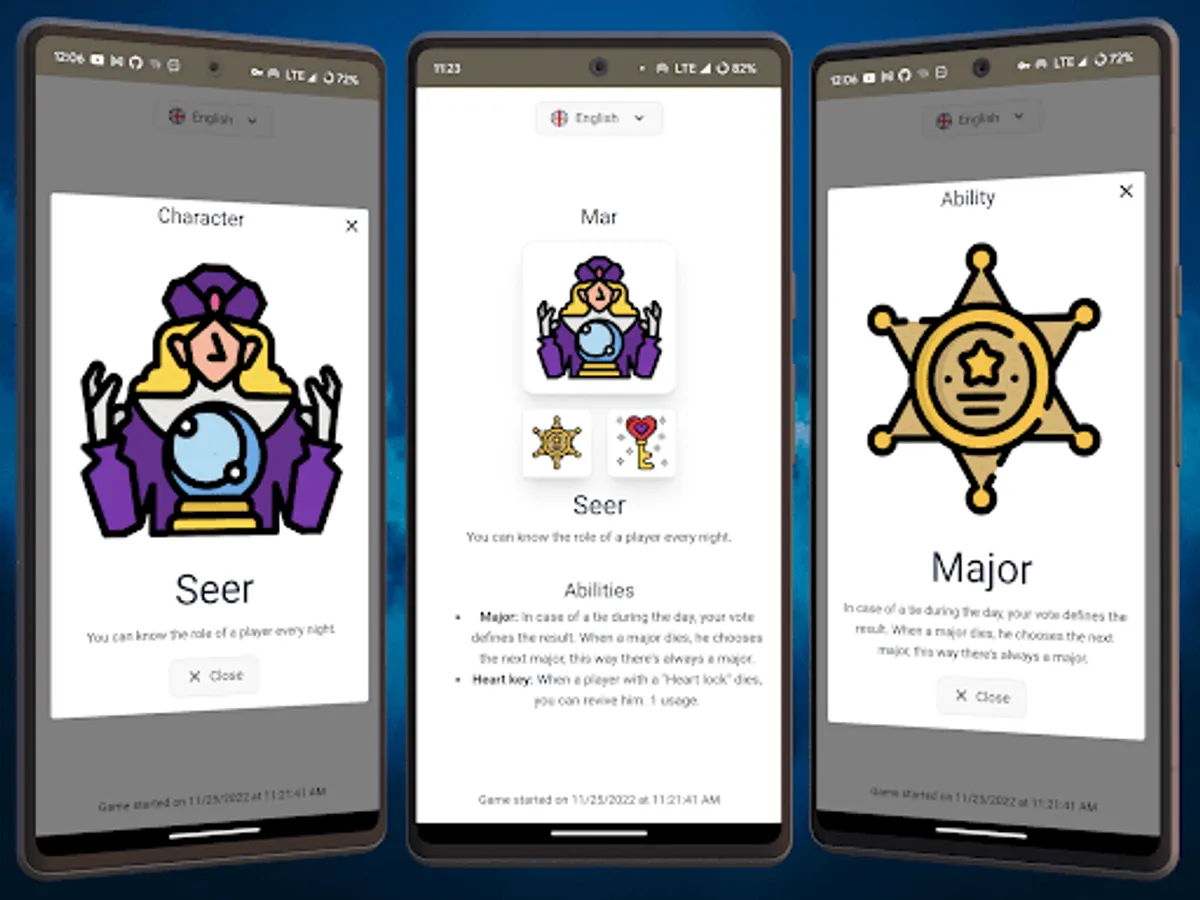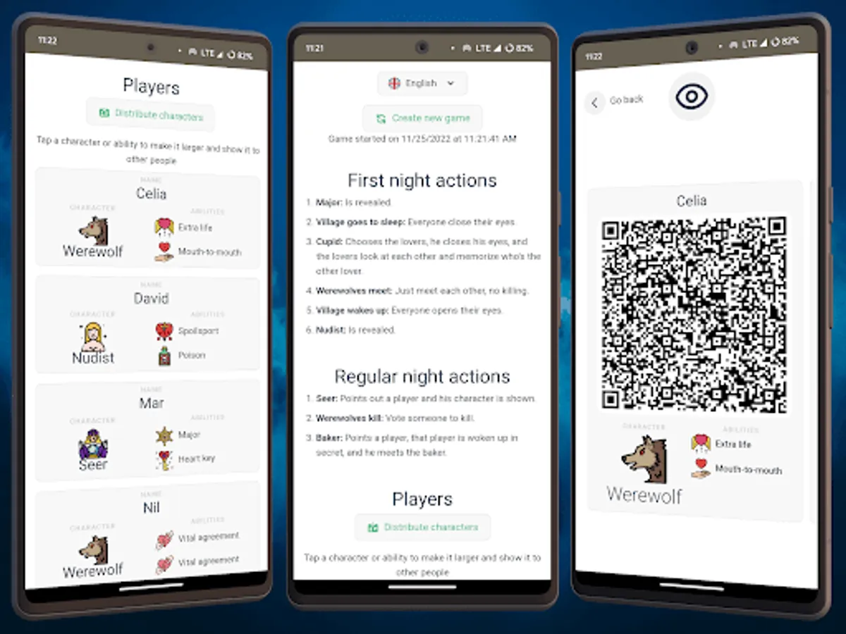 App for helping in game organization of Werwolf game in a real life. Make good time instead of continuous counting. Never forget your role in a game.