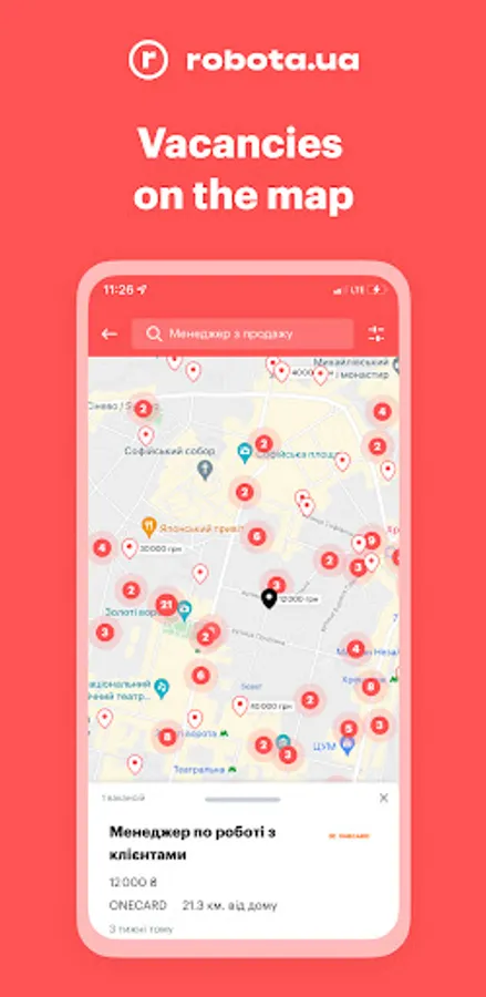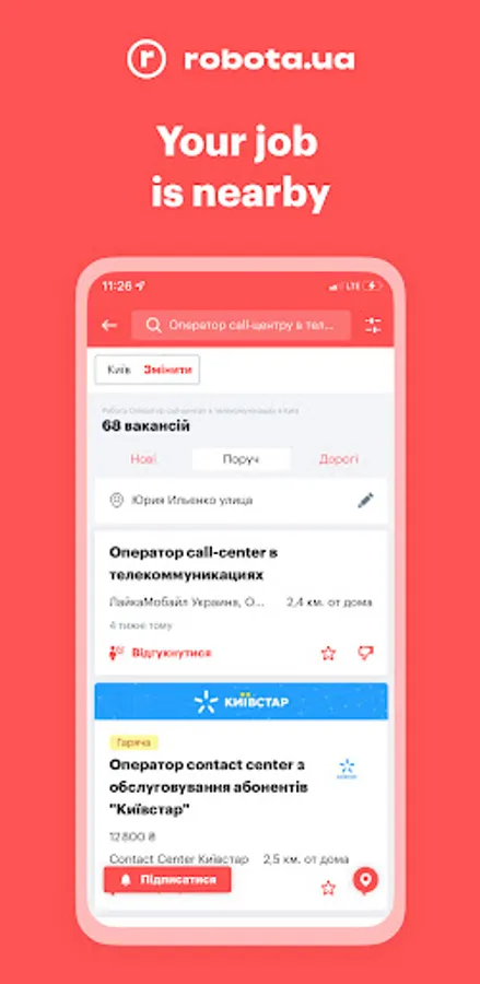 With our application, you can find vacancies located nearby and spend less time getting there. Just type your address, and we will show you the nearest options.