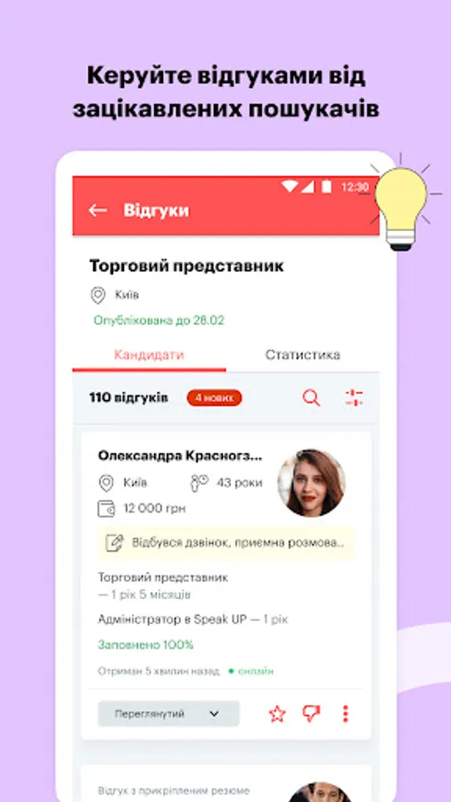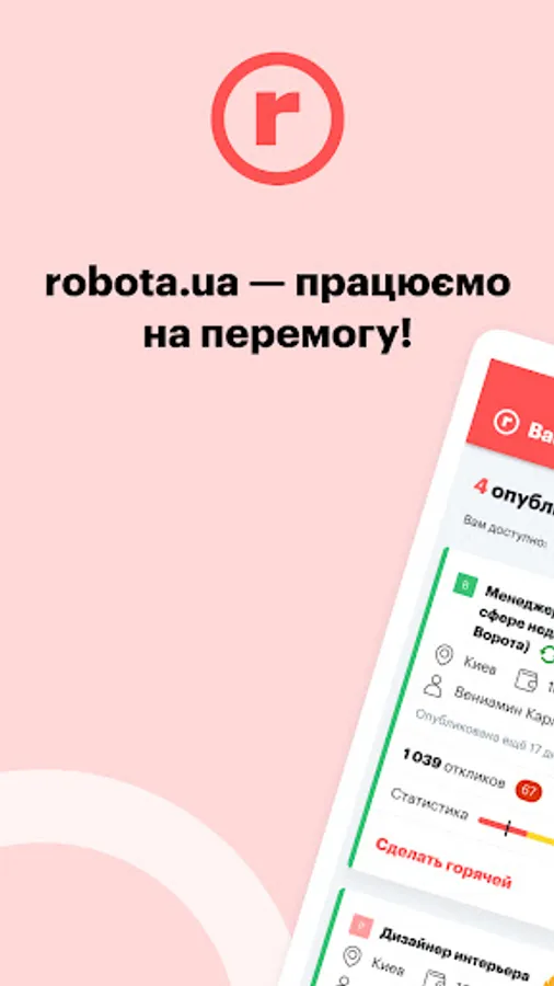 Robota.ua - now candidates are in your pocket! With the application you can quickly find staff for your team at any time you like.