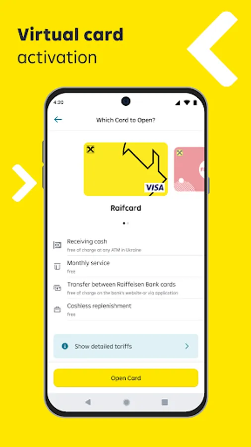 MyRaif is a new mobile app from Raiffeisen Bank. Open new virtual cards for free. Transfer money from your debit cards to cards of any Ukrainian banks quickly and without fee. Keep an eye on your expenses with a clear transaction history. Activate the cards purchased in the АТБ store.
