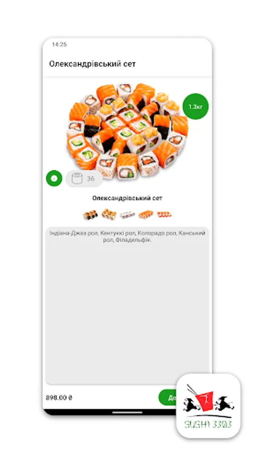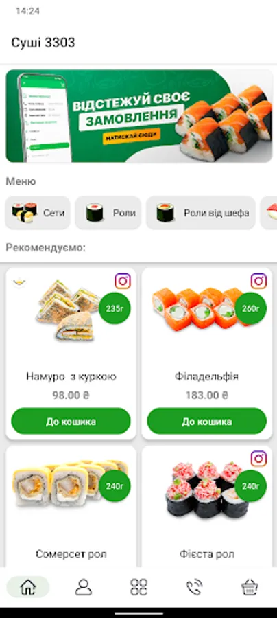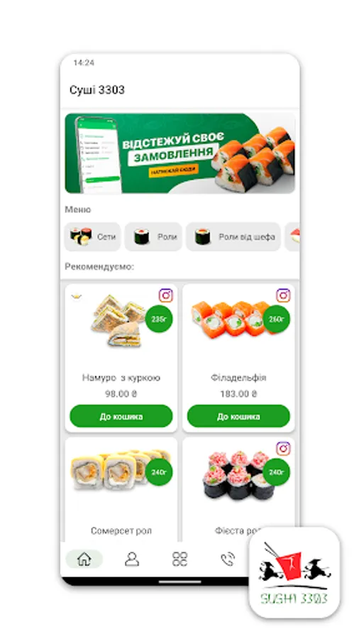 The Sushi 3303 app makes ordering sushi and rolls with delivery convenient and easy. With the help of the application, you can choose your favorite sushi in two clicks and order delivery anywhere in the city. A large assortment allows you to choose sushi, rolls, noodles and drinks for any taste. The skill of our chefs will make you become our regular customer.