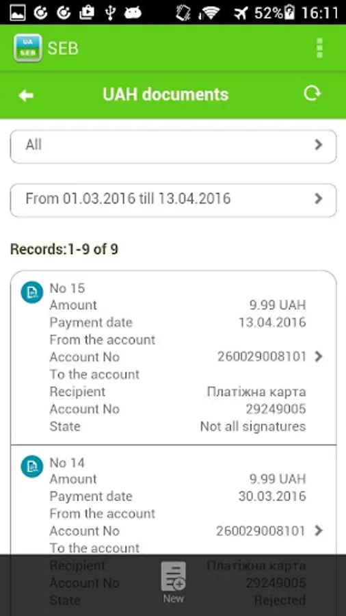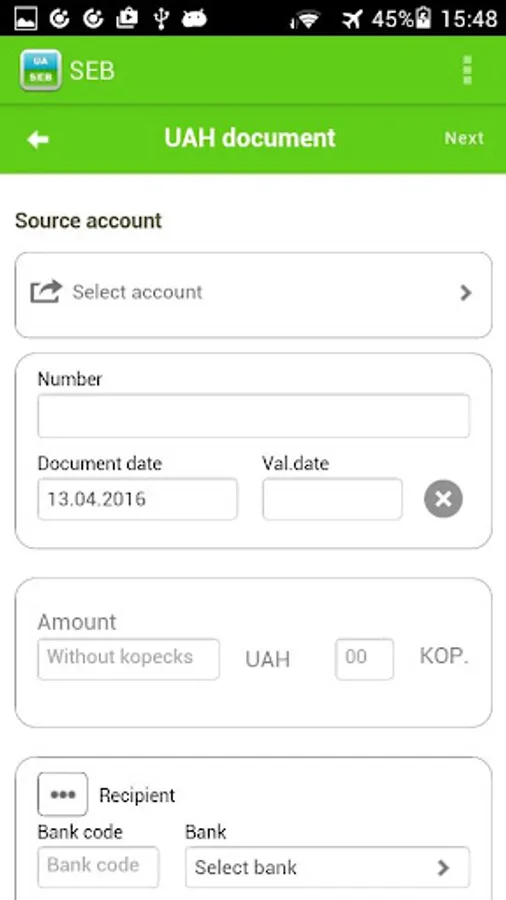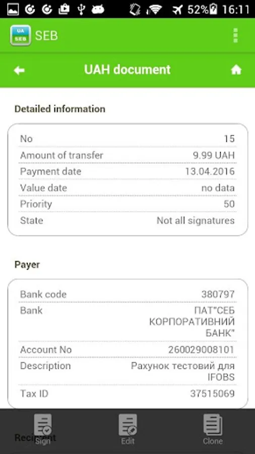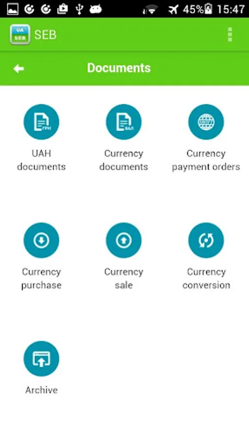 Mobile banking from PJSC "SEB CORPORATE BANK" is an interactive application for remote maintenance of accounts and is accessible from all locations using a personal mobile device based on Android that helps users to control and manage their finances. The system provides a wide range of functionalities such as: