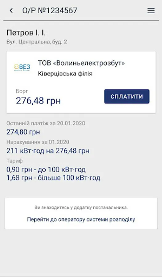 Особистий кабінет Волиньелектр Screenshots