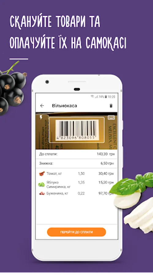 Want to find out the price of a product as you go to shop or add it to your shopping list while you're at a supermarket? Silpo's price scanner feature for scanning barcodes makes it easy to find out the price of products in supermarkets. If you want to make your shopping easier, try the “Vilnokasa” feature to add products to your shopping cart in just a few clicks and pay for your purchase using the Silpo app on a check-out counter.