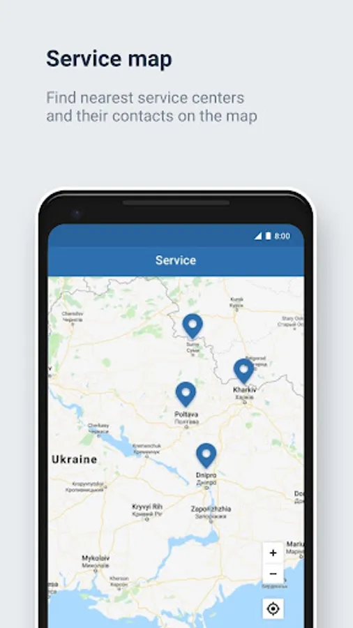Also, the user is provided with information about the geography of service platforms, where you can get the full range of repair services 24/7.