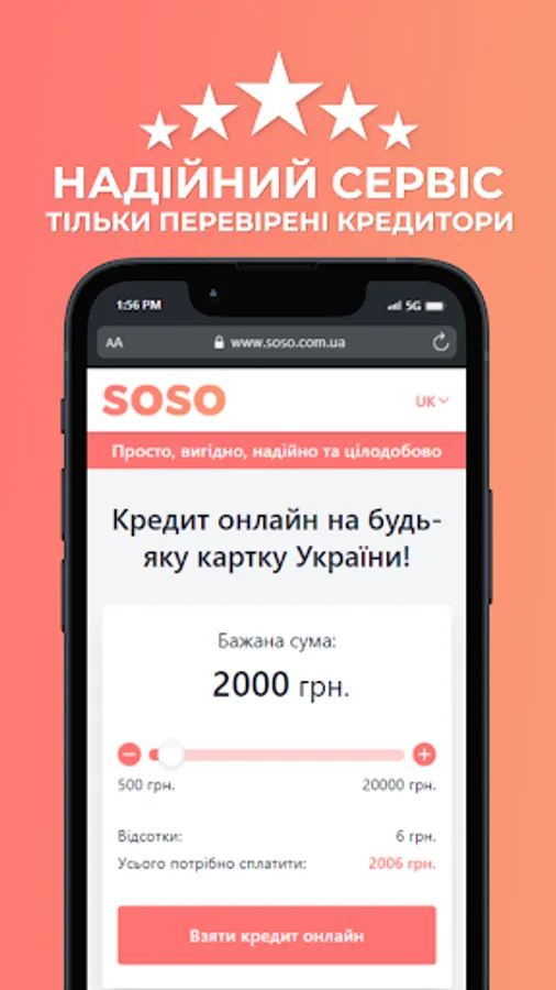 The SOSO mobile application will help everyone compare and choose a profitable loan online! It only takes a few minutes of your time.