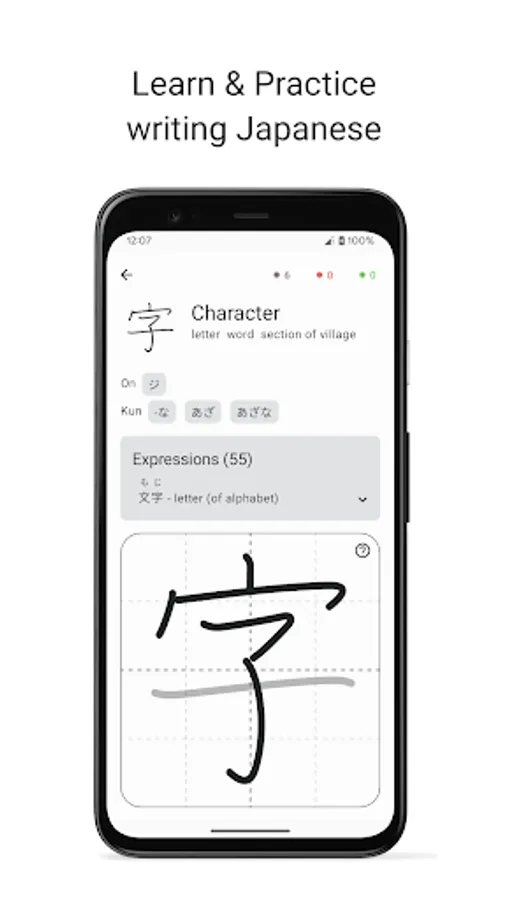 • Suitable for absolute beginners and advanced users - can study hiragana, katakana and kanji