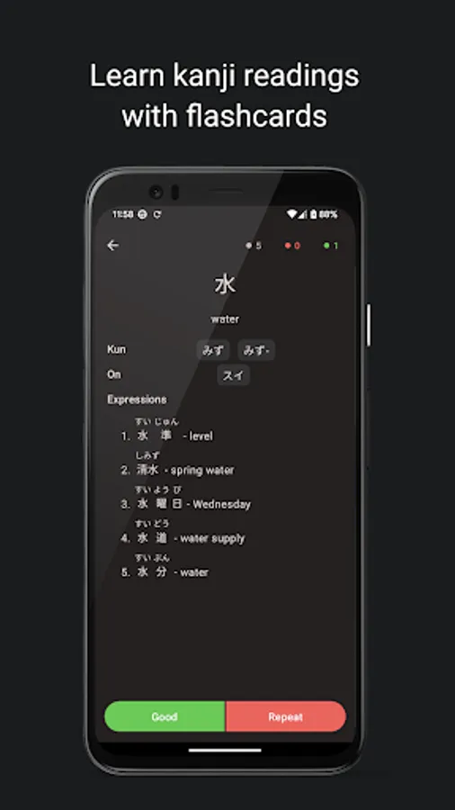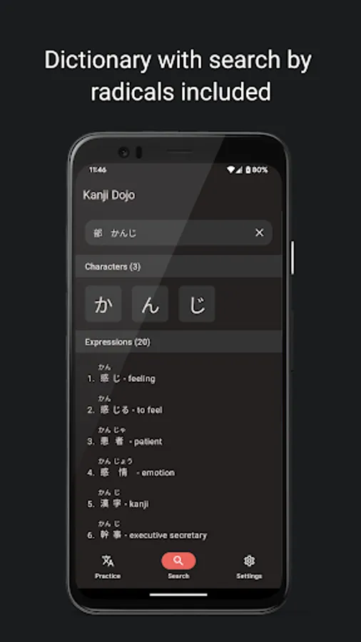 Learn writing stroke orders, practice kana and kanji readings with flashcards, search unknown characters and words with dictionary. All the content is available for free and application doesn't require internet connection so you can keep studying anywhere, anytime
