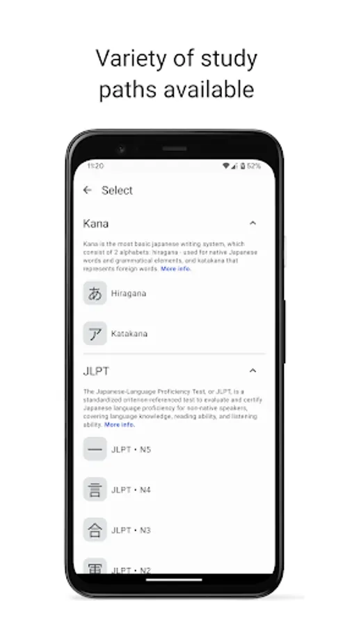 • Follow various learning paths such as JLPT levels, Japanese school grades or Wanikani levels